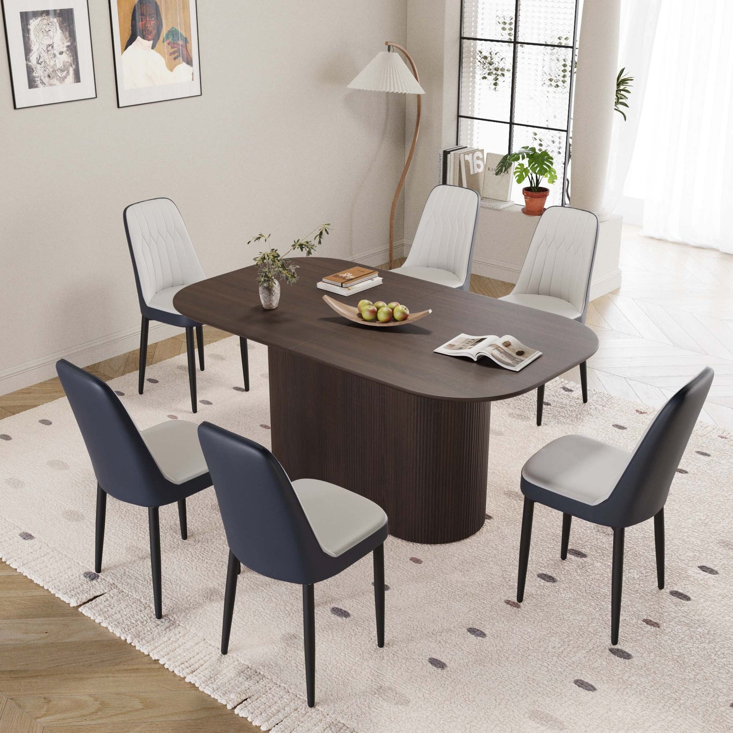 - 8.7 juegos de mesas y sillas: una mesa que puede acomodar de 4 a 8 invitados para reuniones y 6 sillas de comedor ergonómicas de estilo moderno de lujo de cuero artificial, creando un foco de moda para usted en el comedor.