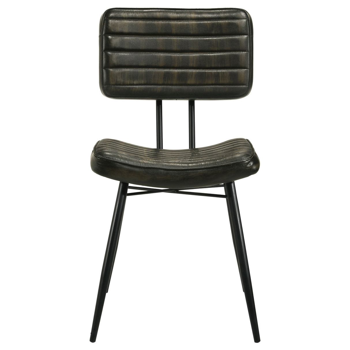 • Las sillas laterales cuentan con una estructura de metal icónica y una tapicería con mechones acanalados.