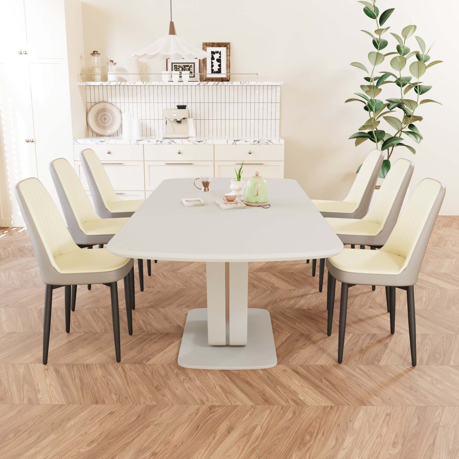 Juego de mesa de comedor expandible de 62,99 a 78,74 pies para 2 a 8 personas, equipado con 6 sillas de comedor acolchadas gruesas de tela de PU y una espaciosa mesa de comedor, mesa de cocina y sillas, con patas de mesa en forma de U