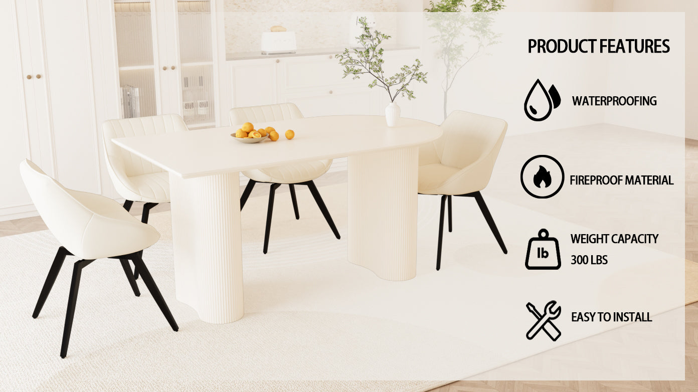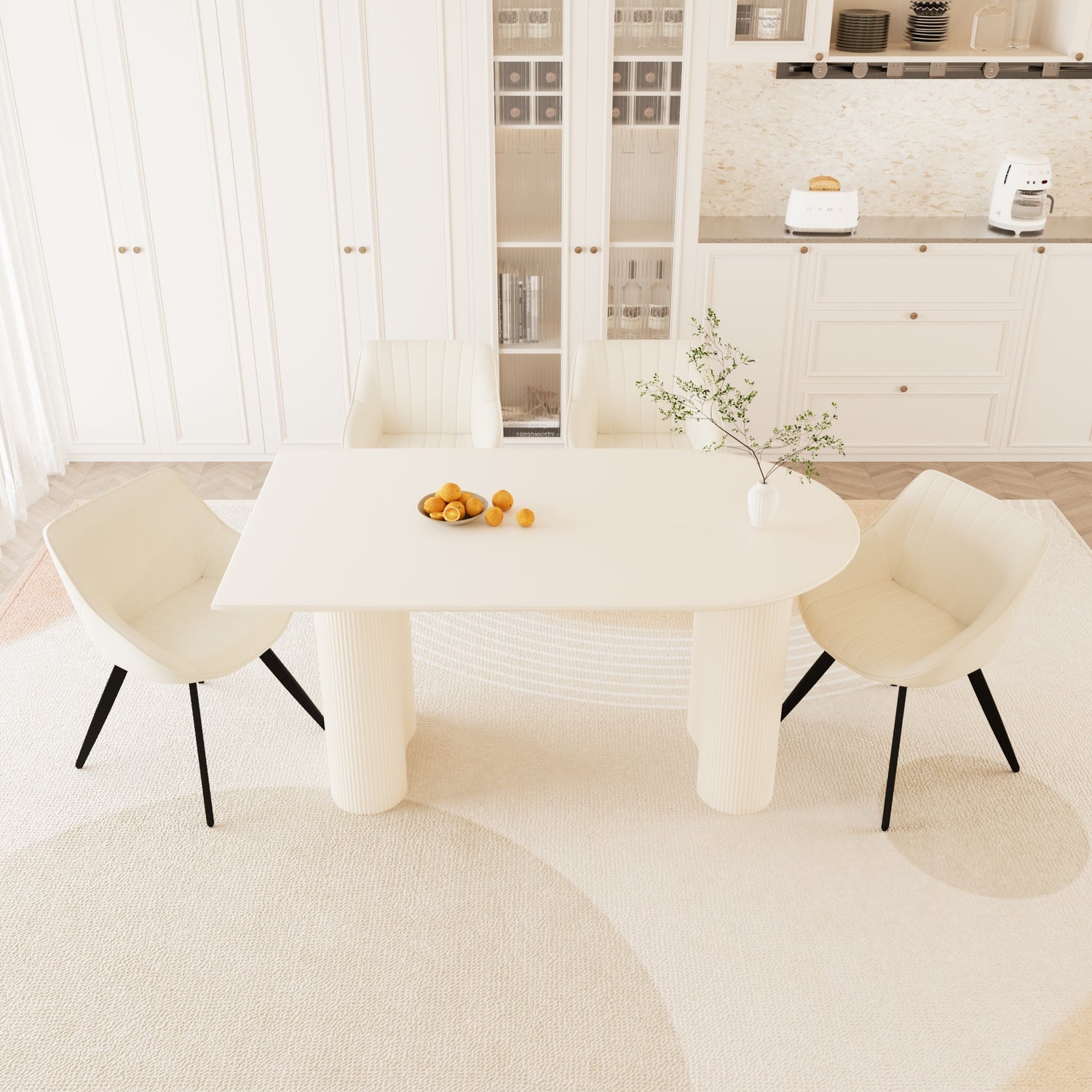Mesa de comedor de MDF estilo crema moderno medieval de 63' y juego de sillas de comedor de PU beige, 4 juegos de sillas de comedor con patas de metal negro, adecuadas para cocina y hogar.