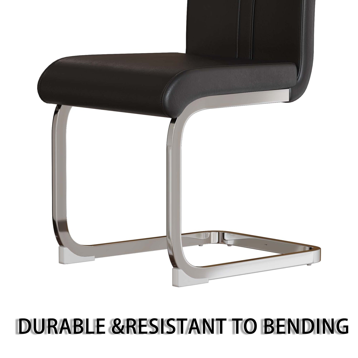 - 8. Duradera y resistente: Esta robusta silla de comedor de cuero negro cuenta con una base plateada en forma de C, que le da un aspecto moderno y único. La base cuenta con patas de plástico resistentes a los arañazos para evitar daños en el suelo.
