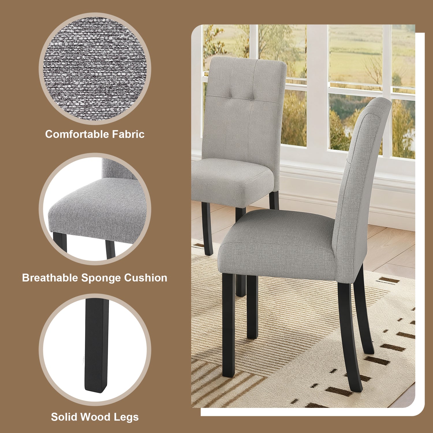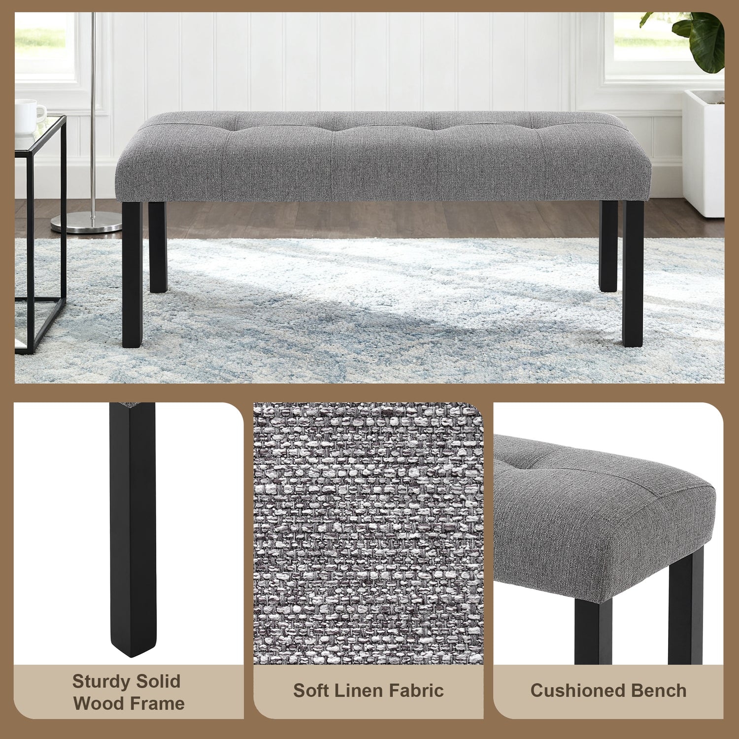 - Diseño moderno y elegante: Con sus líneas elegantes y estética contemporánea, este juego de comedor aporta un toque de elegancia moderna a cualquier hogar. El diseño capitoné de las sillas y el banco añade un toque sofisticado, combinando comodidad y estilo chic. Ya sea que su decoración se incline hacia el minimalismo, la industrial o el lujo moderno y ligero, este juego se integra a la perfección, convirtiéndose en un punto focal que realza el ambiente general de su comedor.