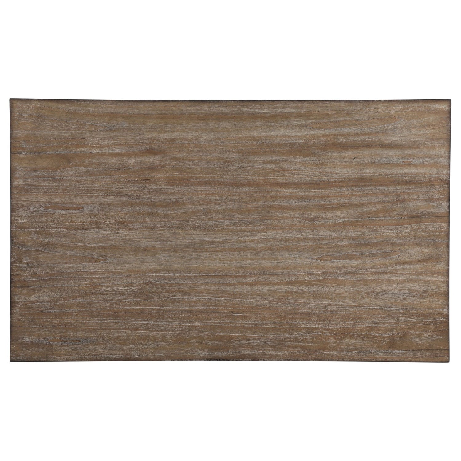 - Con una superficie de mesa pulida con chorro de arena, cepillada en seco y efectos de lijado.