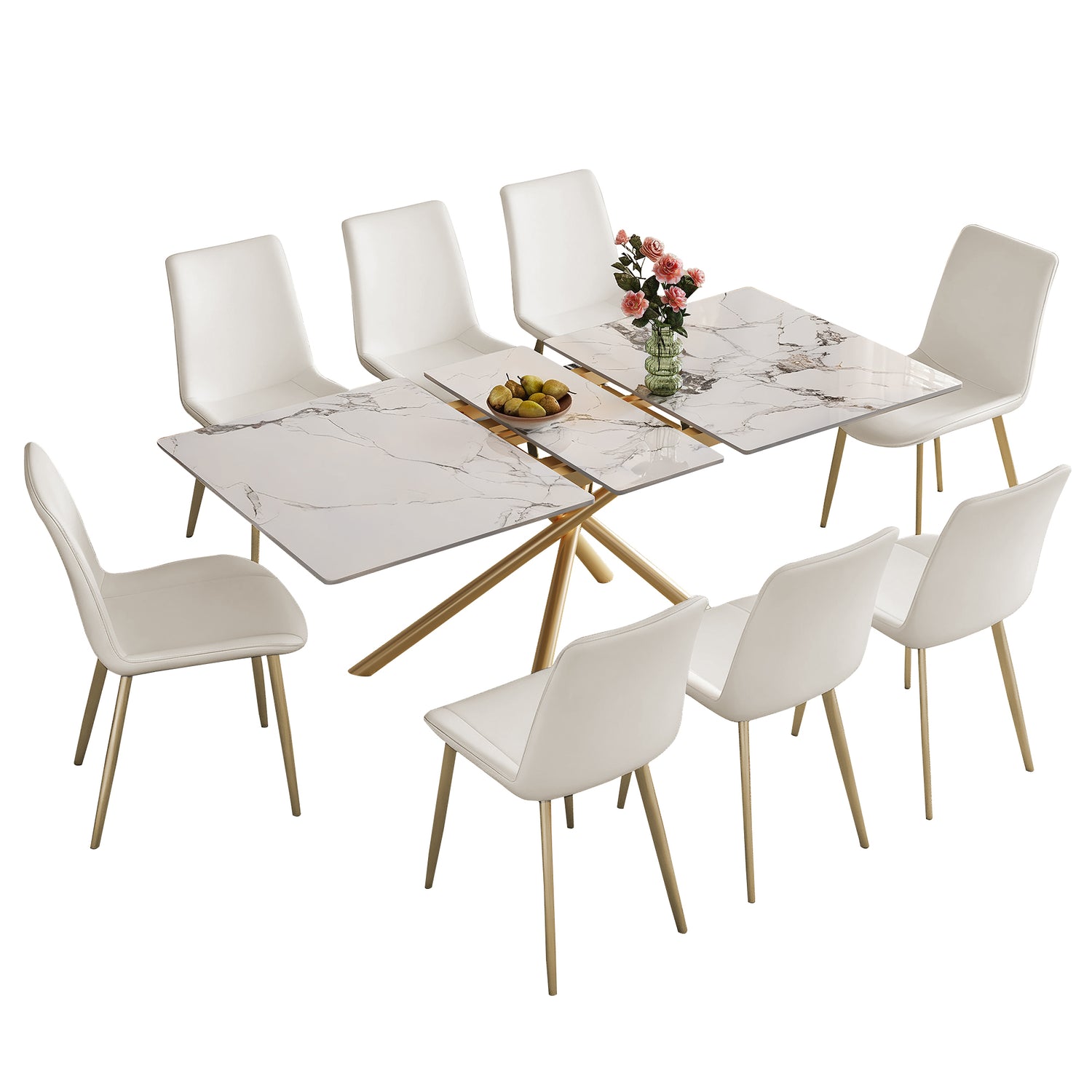 - ✅【8 sillas de PU blancas incluidas】Incluye ocho sillas tapizadas de PU blancas diseñadas para brindar comodidad y resistencia, complementando la estética de la mesa para un juego de comedor completo.