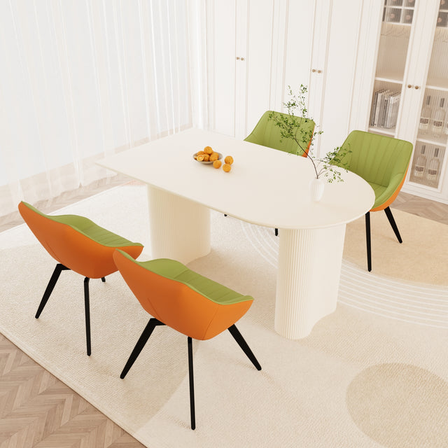 Mesa de comedor de MDF estilo crema moderno medieval de 63' y juego de sillas de comedor de PU verde, 4 juegos de sillas de comedor con patas de metal negro, adecuadas para cocina y hogar.