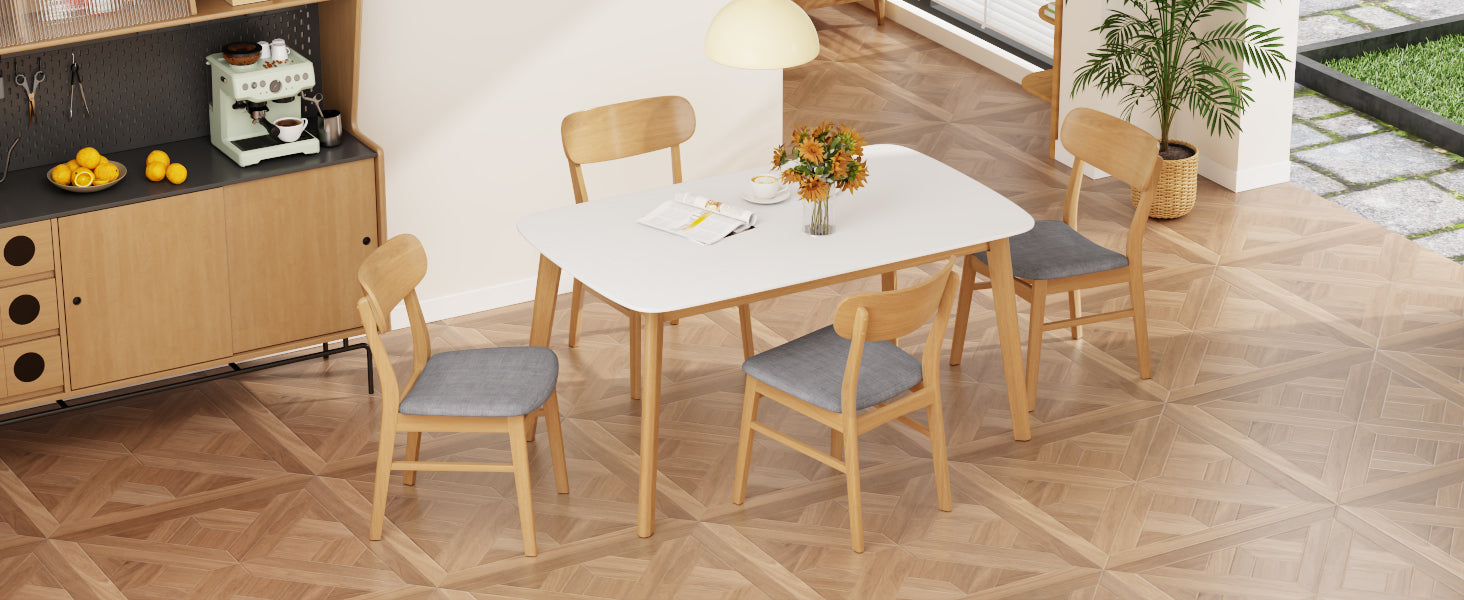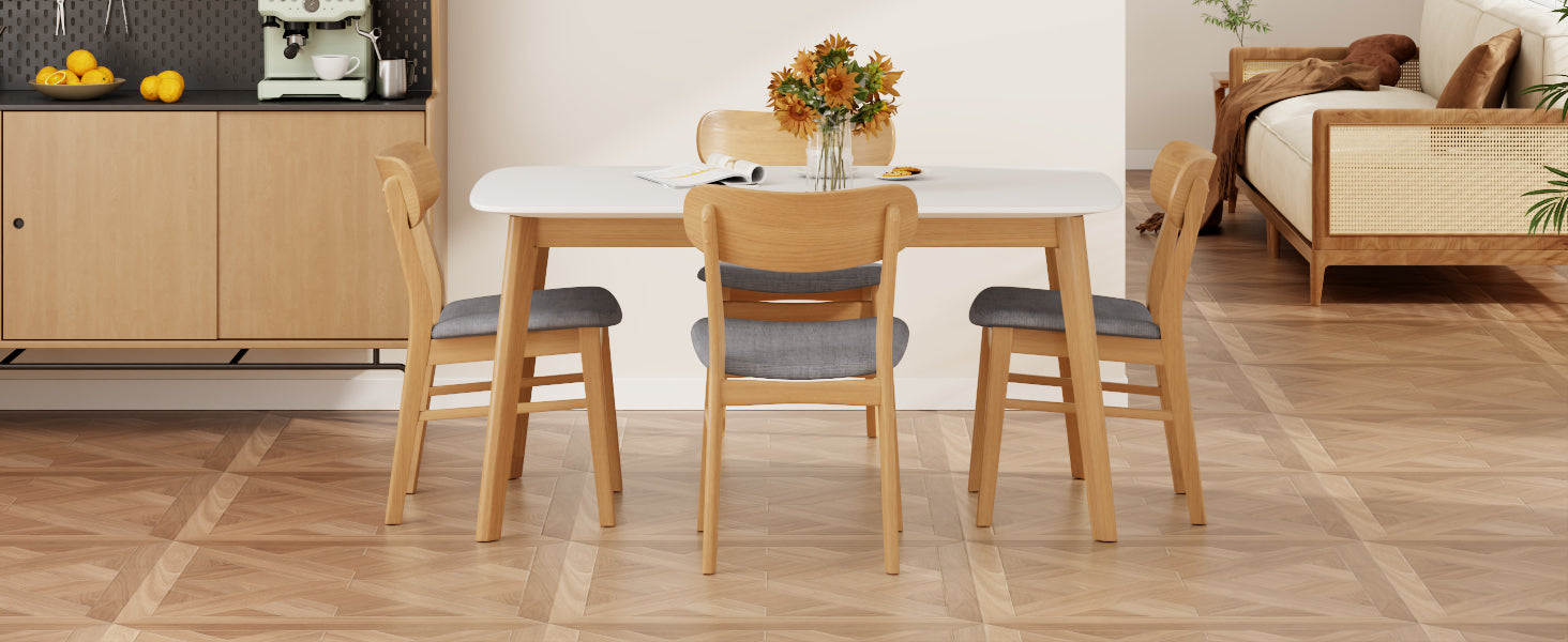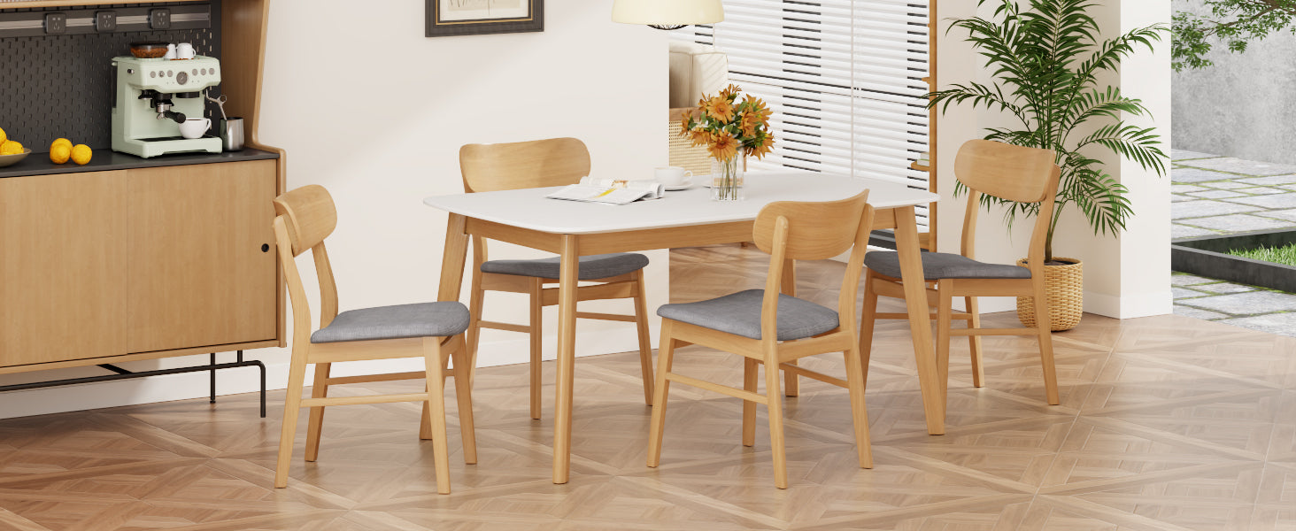 Juego de mesa de comedor de 5 piezas con estructura de madera maciza y 4 sillas tapizadas de madera maciza (roble blanco y gris oscuro)