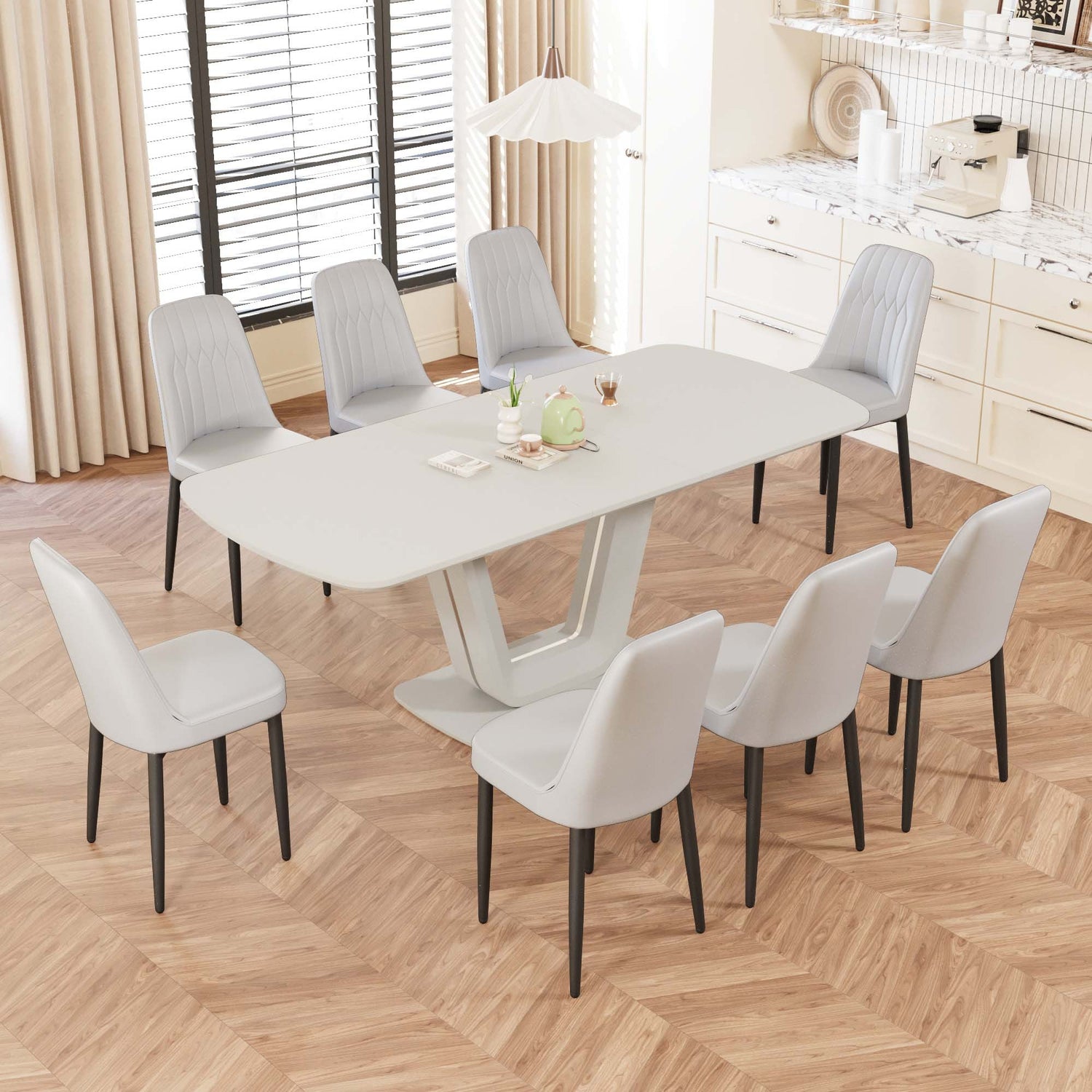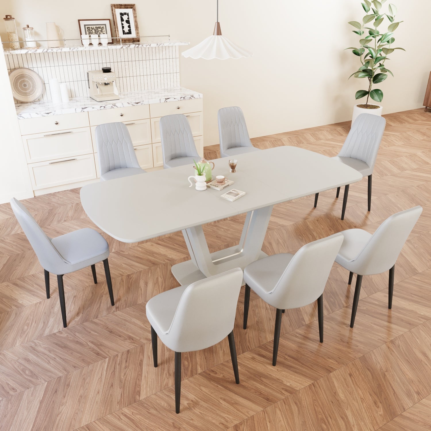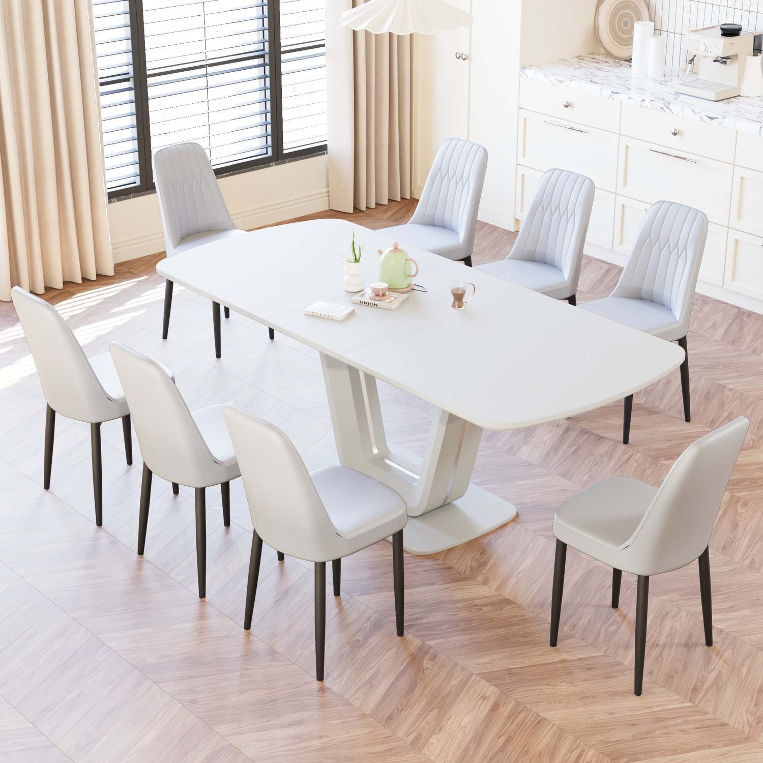 Juego de mesa de comedor expandible de 62,99 a 78,74 pies para 2 a 8 personas, equipado con 8 sillas de comedor acolchadas gruesas de tela de PU y una espaciosa mesa de comedor, mesa de cocina y sillas, con patas de mesa en forma de U