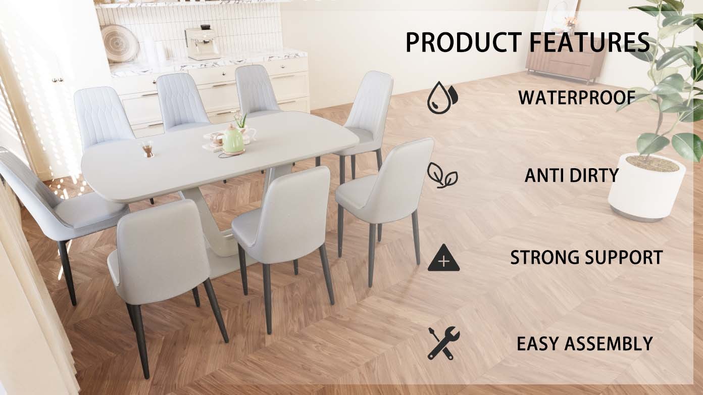 - 6. Experiencia lujosa y cómoda: Nuestras sillas de comedor están hechas de tela de PU y cuentan con asientos acolchados, lo que le permite disfrutar al máximo de la máxima comodidad. Su suave relleno de esponja se adapta perfectamente a su cuerpo, brindándole una experiencia cómoda y relajante cada vez que se siente, disfrute y se relaje.