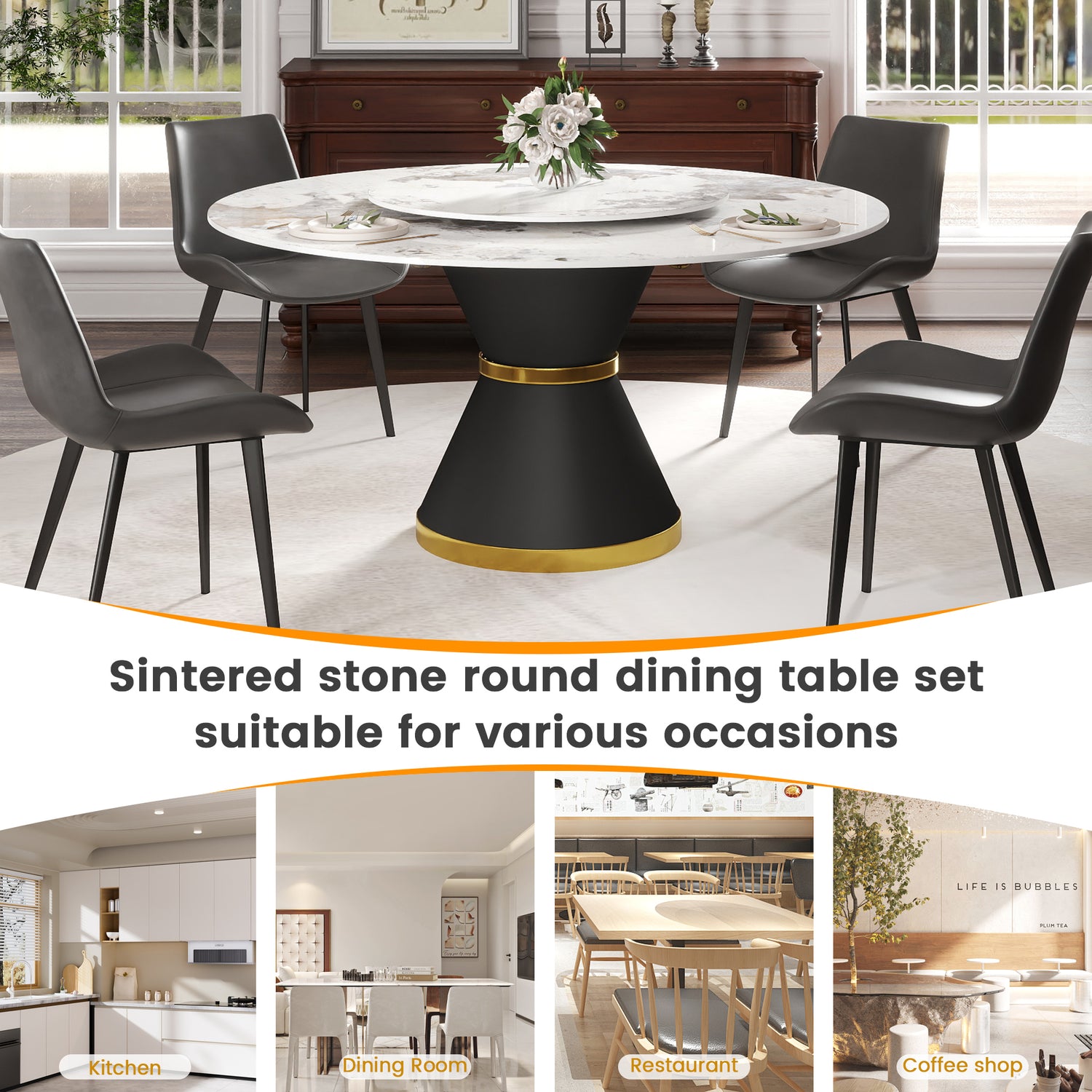 - [Disco giratorio] Añadir un disco giratorio a la mesa del comedor puede aumentar su superficie. Su diseño giratorio facilita que todos los miembros de la familia disfruten de cada plato.