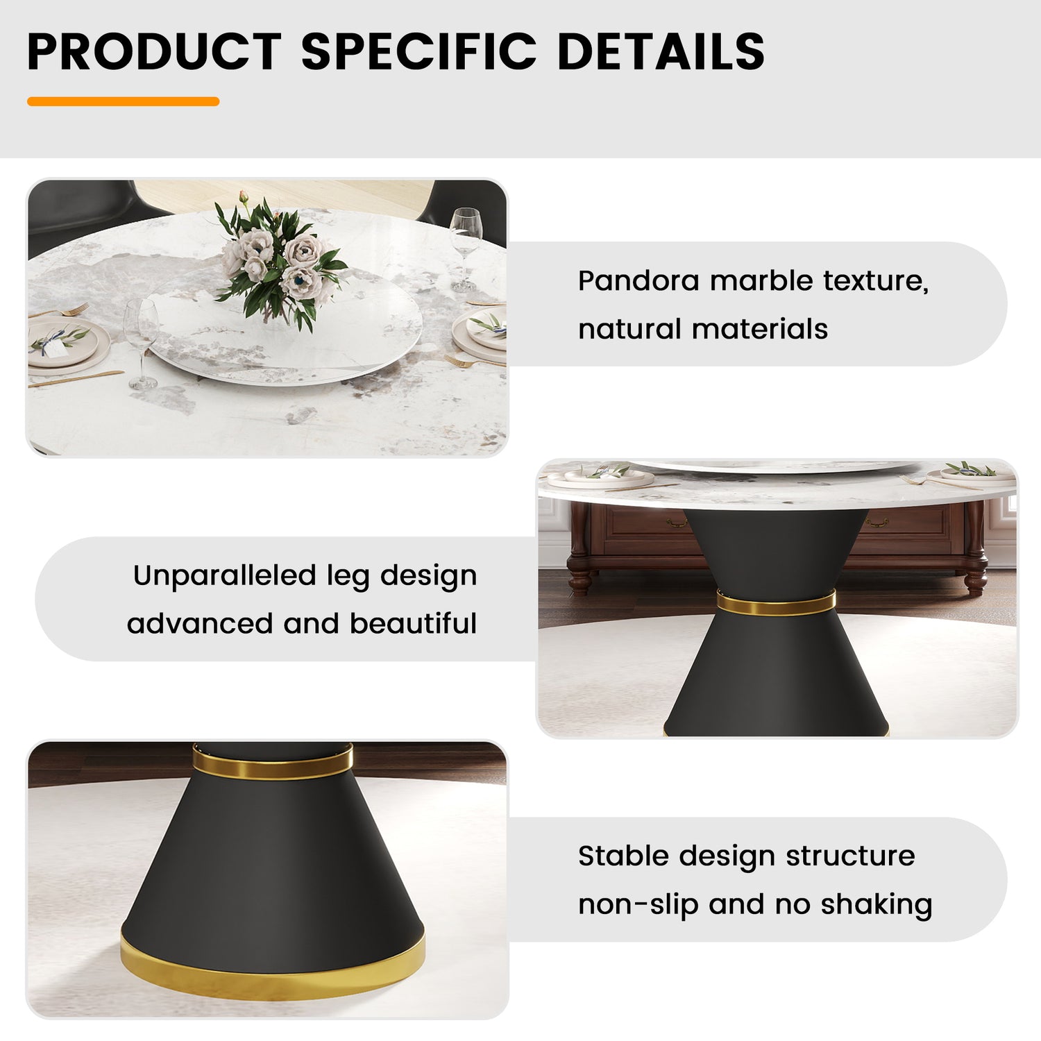 - [Pandora de apariencia sencilla] Esta mesa redonda, hecha de piedra artificial, es una mesa de comedor perfecta con una exquisita artesanía y capacidad para 8 personas. Su base ahuecada le da un toque de simplicidad medieval.