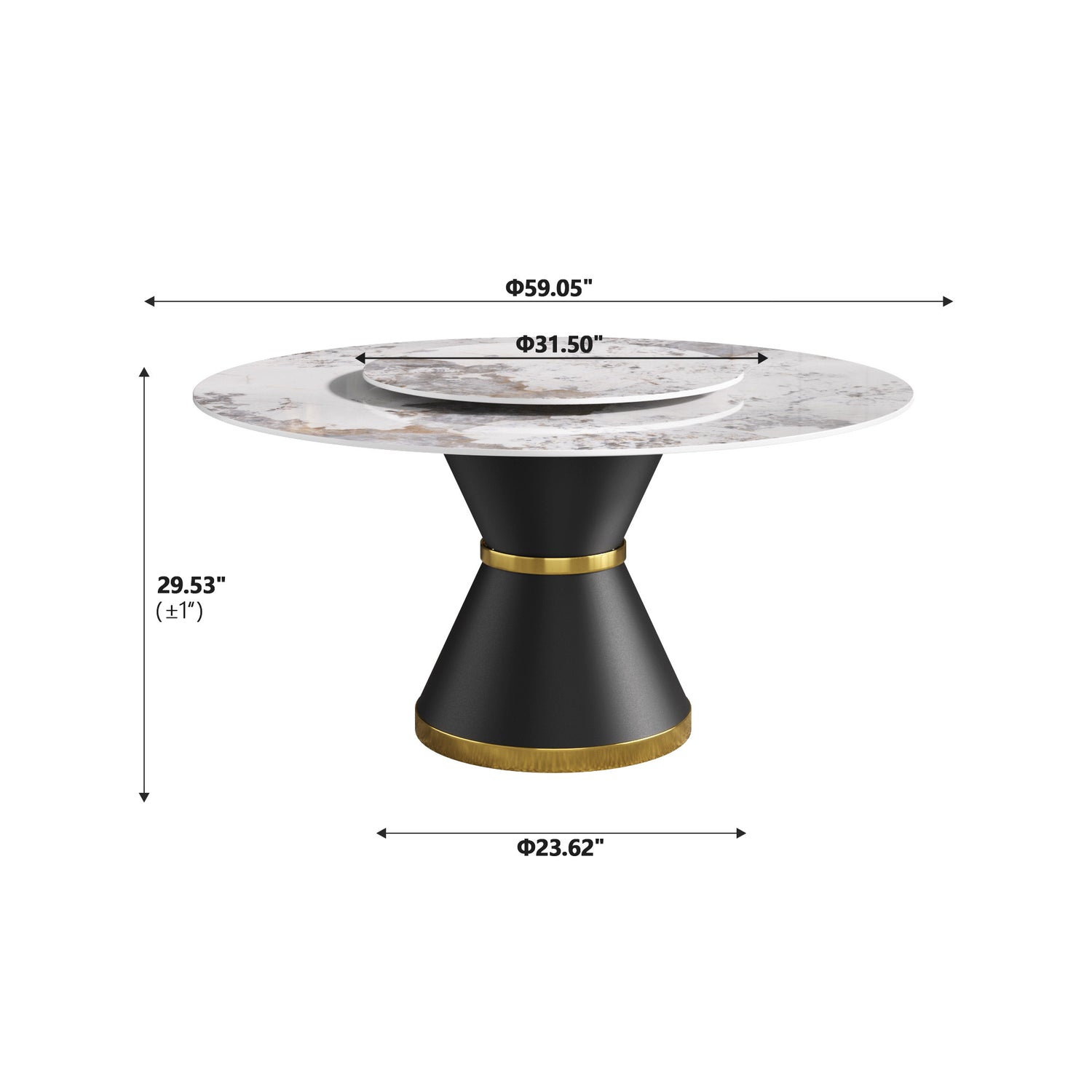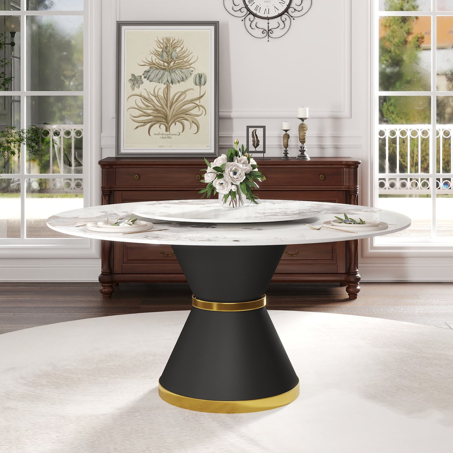 Mesa de comedor moderna de piedra artificial redonda de 170 cm con base de acero al carbono negro y plato giratorio de piedra artificial blanca de 95 cm. Capacidad para 6-8 personas (con 8 sillas). está agotado y se enviará tan pronto como vuelva a estar disponible.