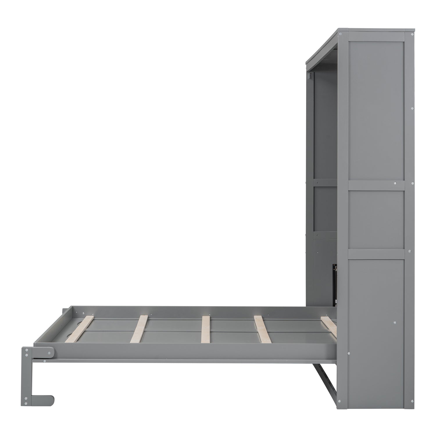 Cama plegable tamaño queen gris con gabinete de almacenamiento