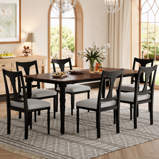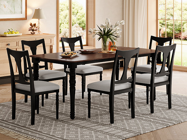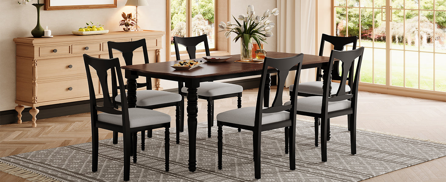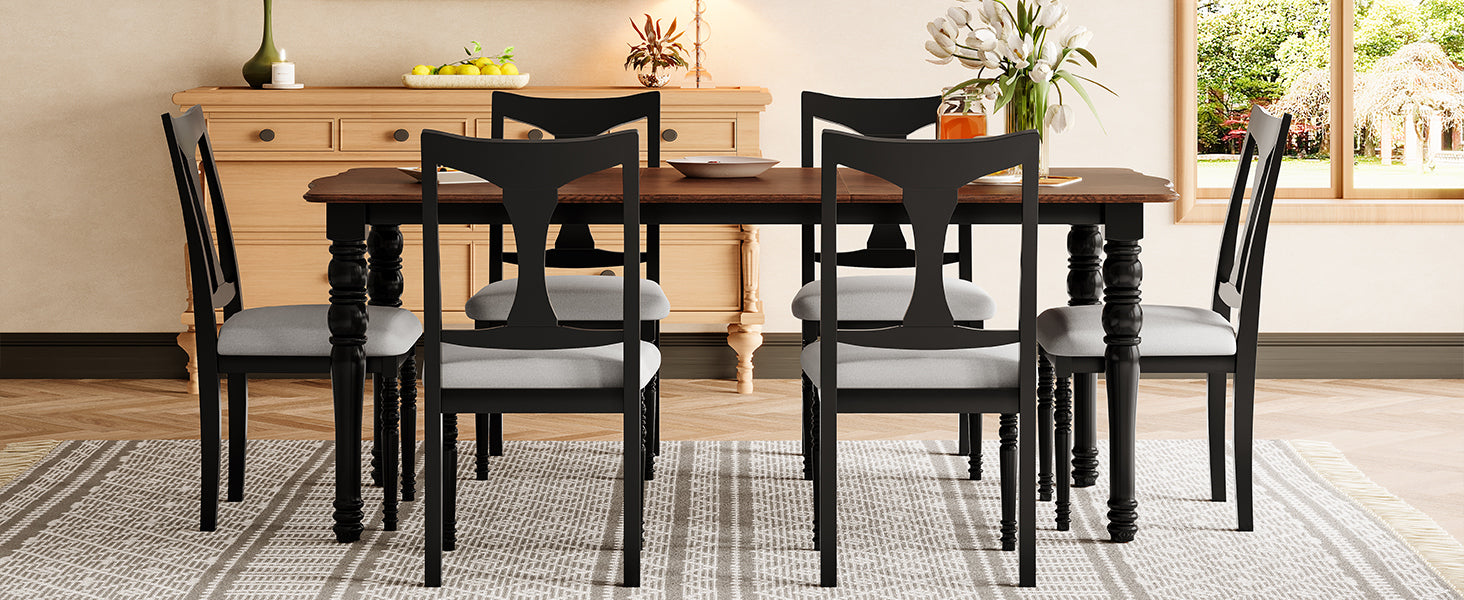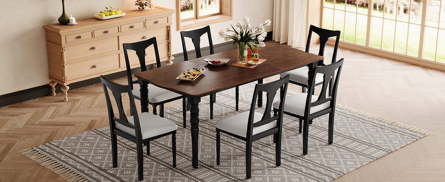 Juego de mesa de comedor de 7 piezas, mesa de comedor de madera extensible de 60 a 78 pulgadas con hoja extraíble, juego de mesa de cocina con 6 sillas laterales tapizadas, juego de mesa de comedor para 6 personas