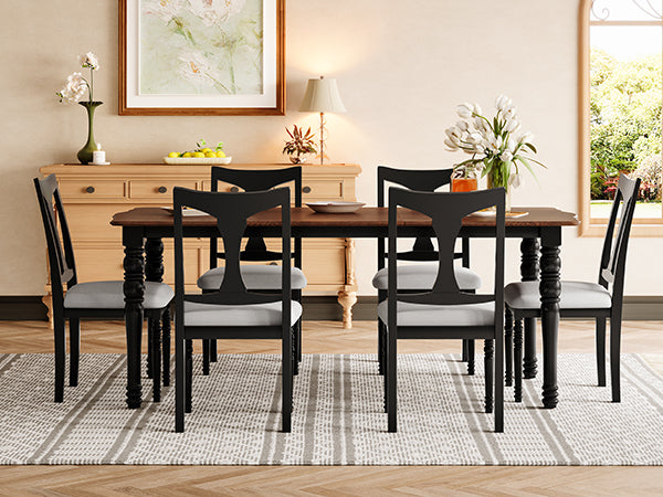 - ESTILO DE CASA DE CAMPO: Este juego de mesa y sillas de comedor bien diseñado es perfecto para un estilo de casa de campo acogedor y rústico, diseñado para que familiares y amigos se reúnan. El tablero de la mesa de longitud estándar de 60 pulgadas acomoda fácilmente a 6 personas y crea un ambiente de comedor alegre.