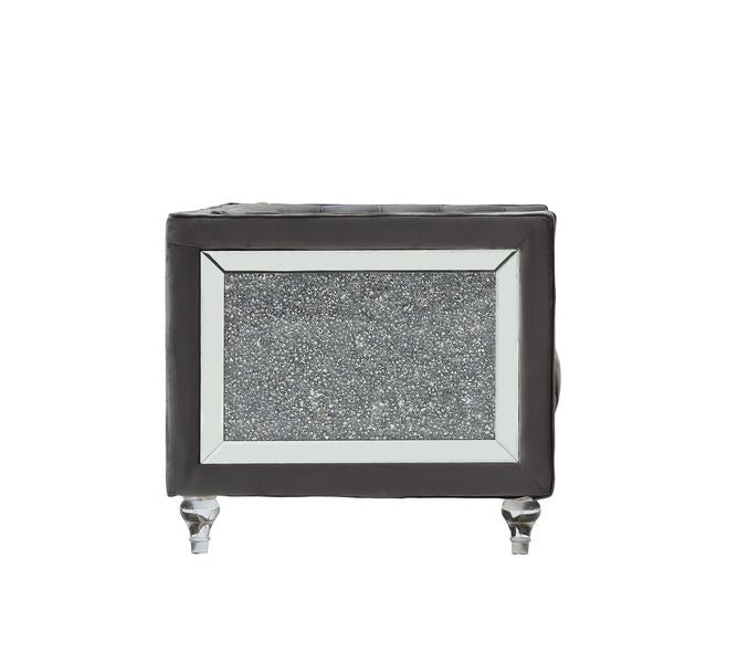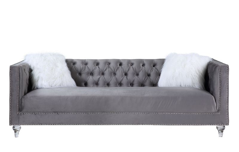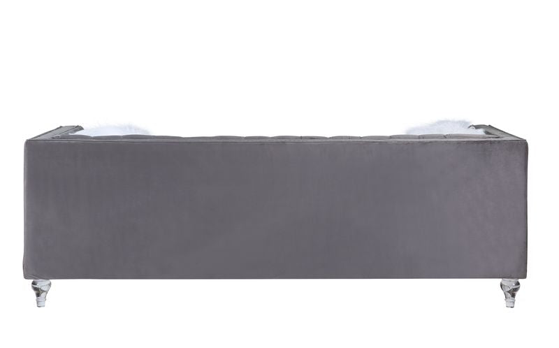 Sofá Heibero II con 2 cojines LV00330, terciopelo gris y ribete de rombos | Acme está agotado y se enviará tan pronto como vuelva a estar disponible.