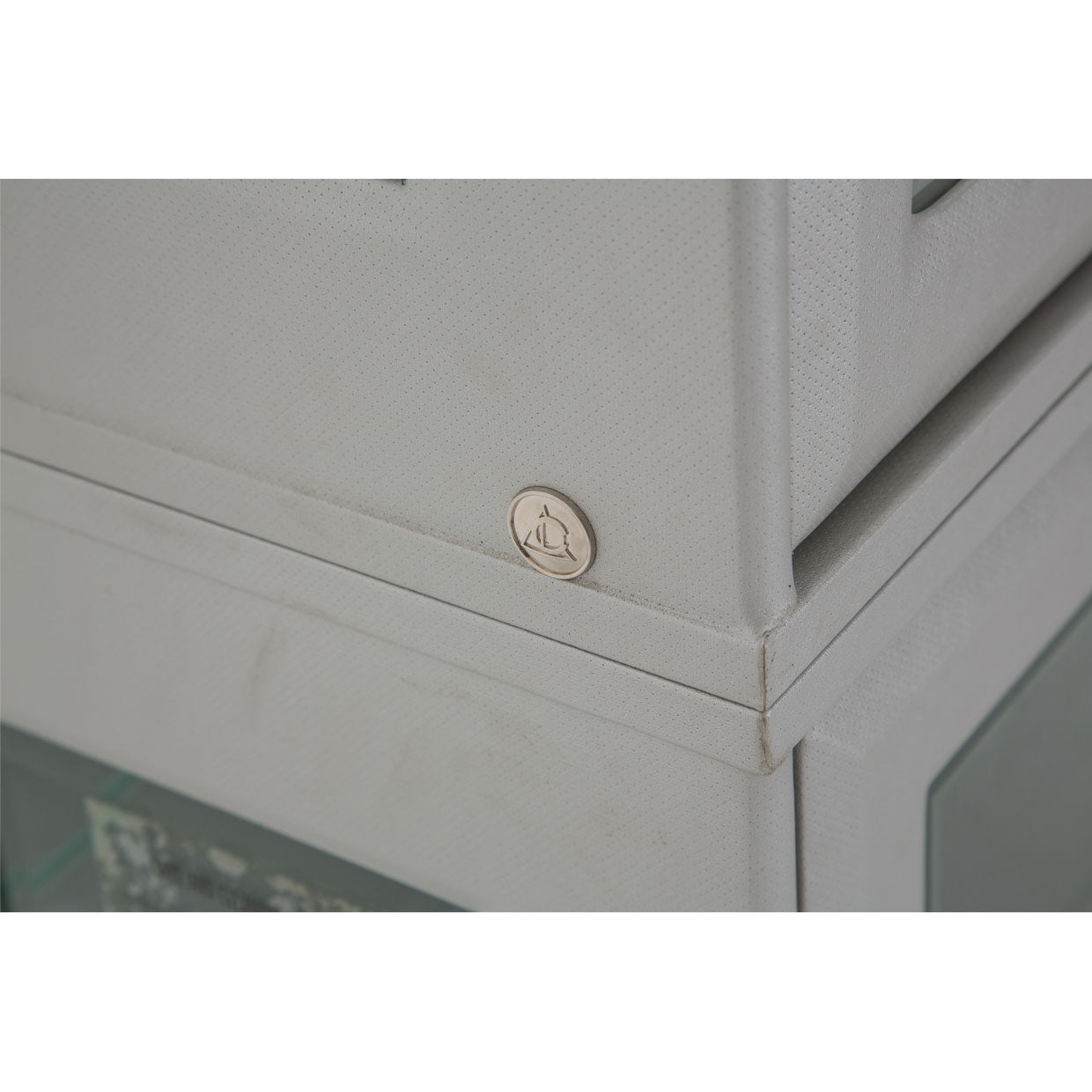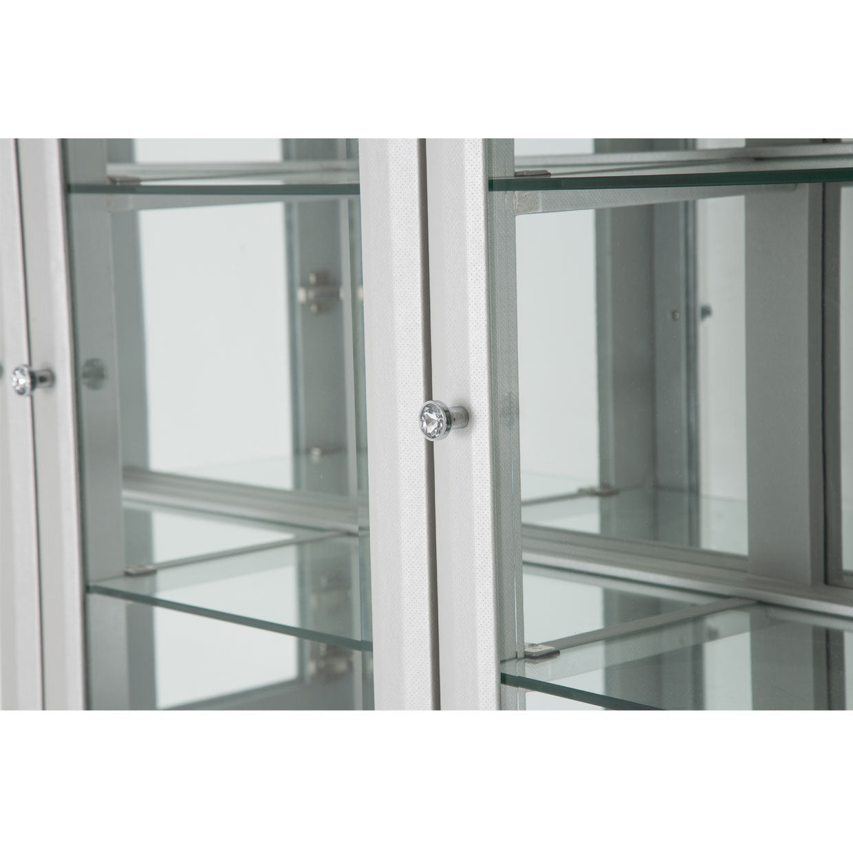 - Los tiradores de las puertas y los cajones tienen inserciones de cristal decorativas.