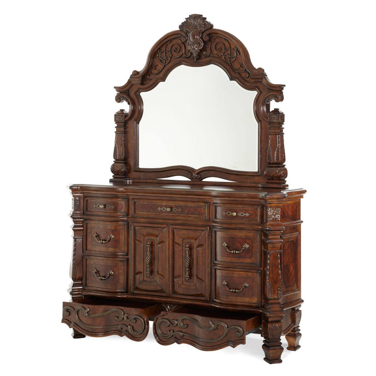 AICO - Juego de dormitorio Windsor Court Queen Mansion de 3 piezas en madera de fruta vintage - 70000QNMB-54-3SET