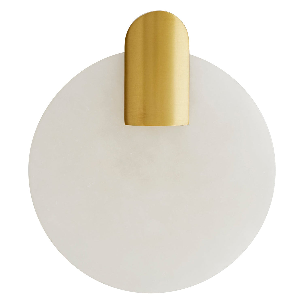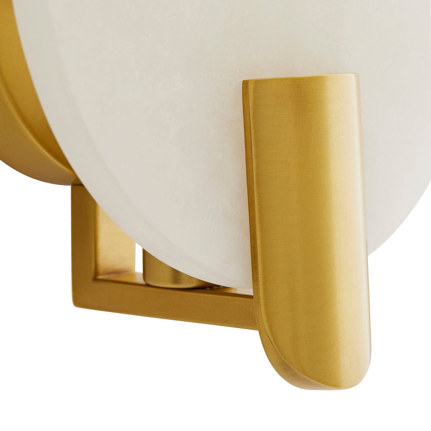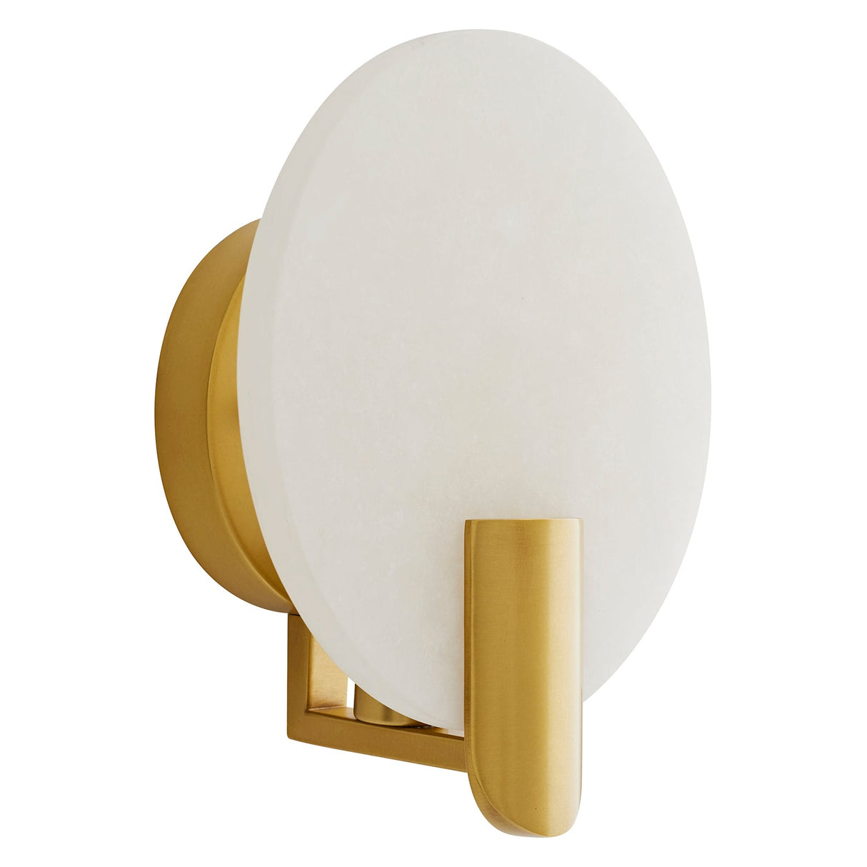 La estética minimalista de este aplique de Arteriors es una pieza de diseño excepcional. La pieza se compone de una magnífica placa circular de alabastro natural, realzada por un detalle de acero y latón antiguo que le aporta dimensión. Equipada con una bombilla LED, el alabastro filtra la luz y crea una cálida luz natural. Vemos este aplique de inspiración joyera, colgado en múltiples piezas, aportando un aire clásico y contemporáneo a cualquier espacio.
