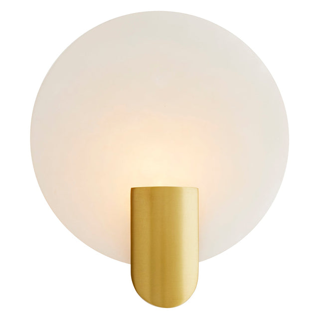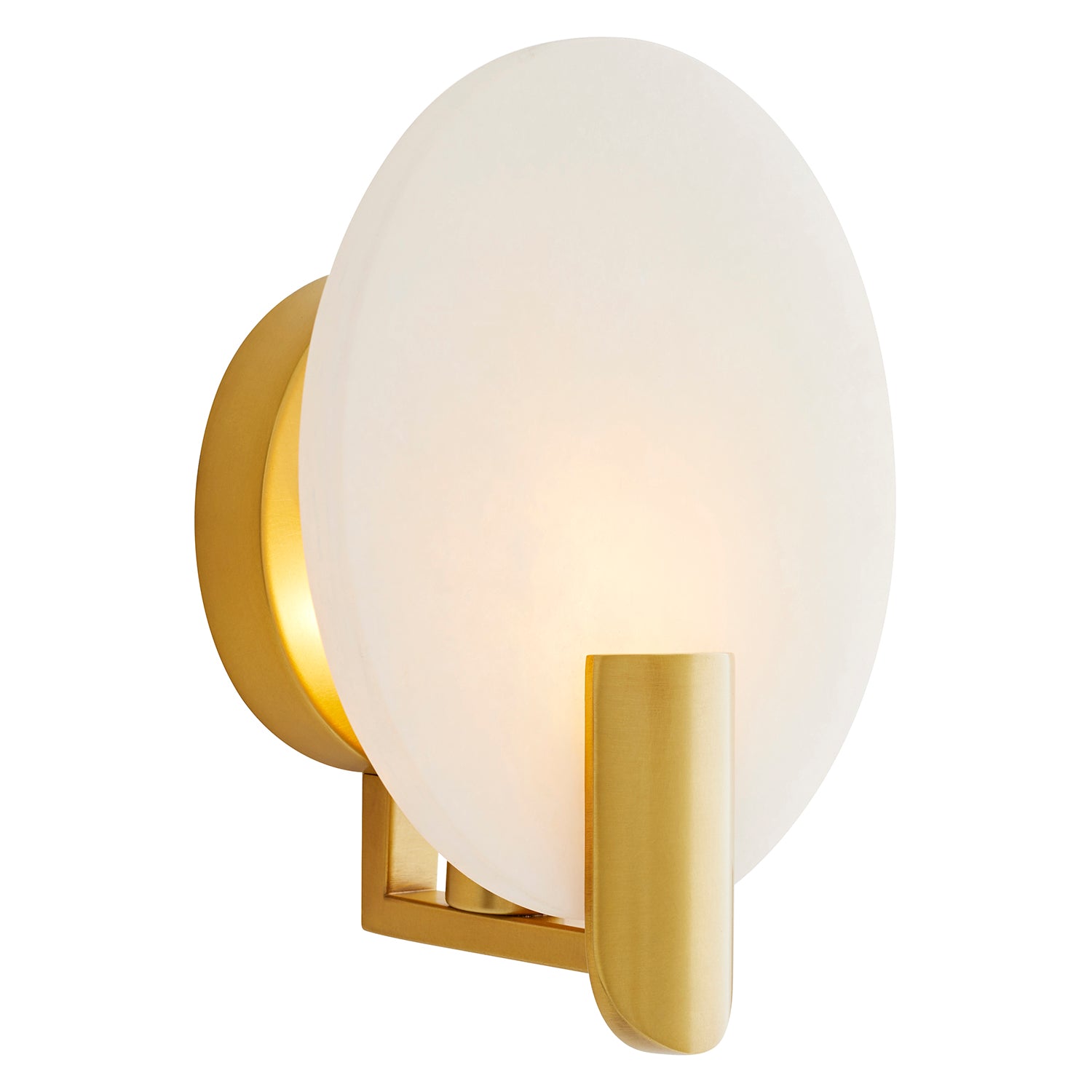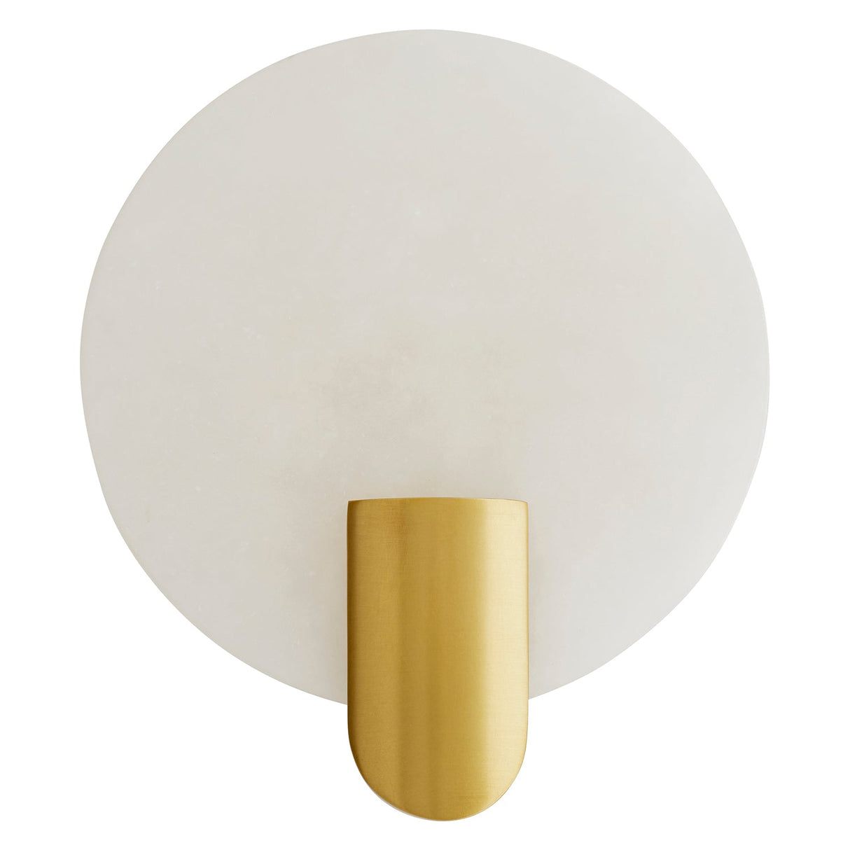 La estética minimalista de este aplique de Arteriors es una pieza de diseño excepcional. La pieza se compone de una magnífica placa circular de alabastro natural, realzada por un detalle de acero y latón antiguo que le aporta dimensión. Equipada con una bombilla LED, el alabastro filtra la luz y crea una cálida luz natural. Vemos este aplique de inspiración joyera, colgado en múltiples piezas, aportando un aire clásico y contemporáneo a cualquier espacio.