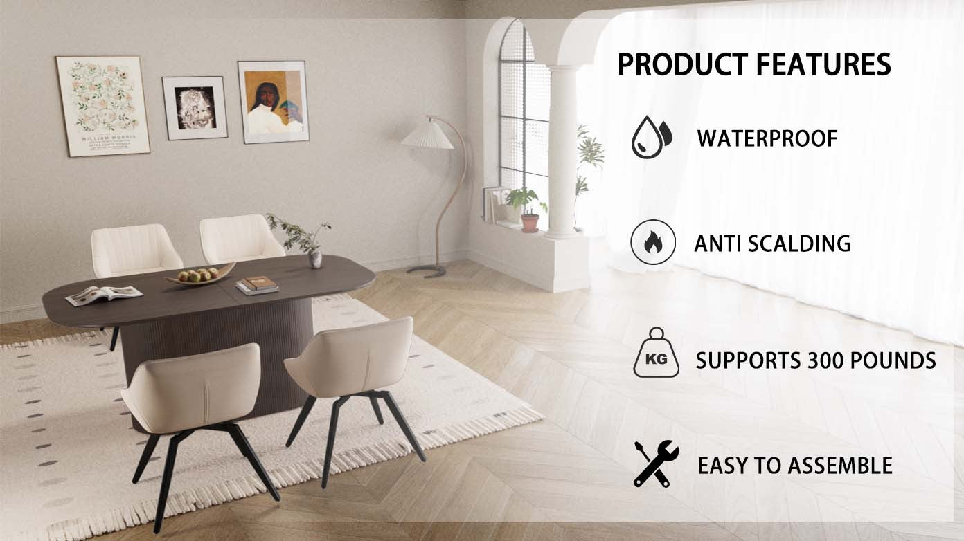 - 8.5 juegos de mesas y sillas: una mesa que puede acomodar de 4 a 8 invitados para reuniones y 4 sillas de comedor ergonómicas de estilo moderno de lujo de cuero artificial, creando un foco de moda para usted en el comedor.