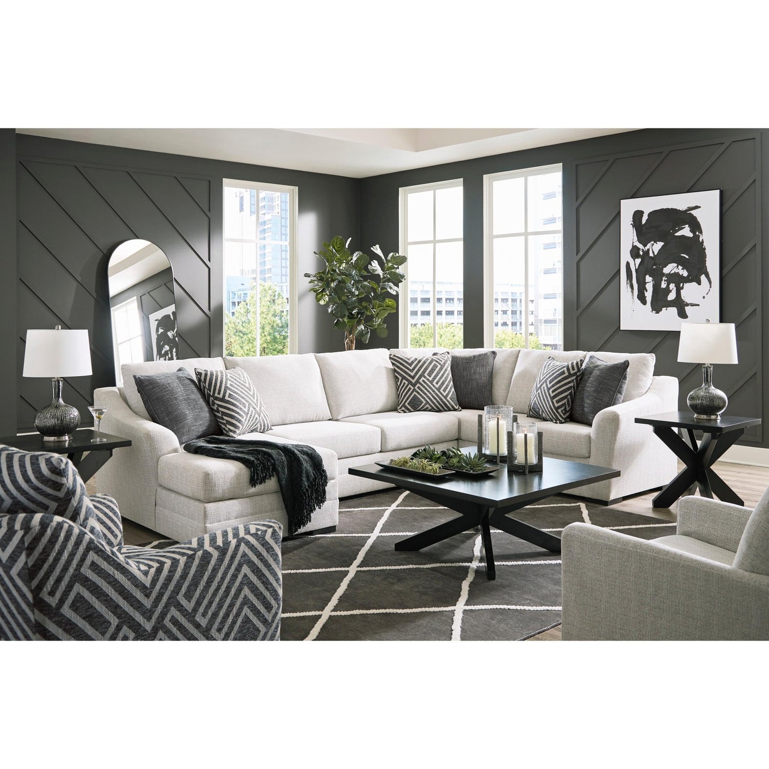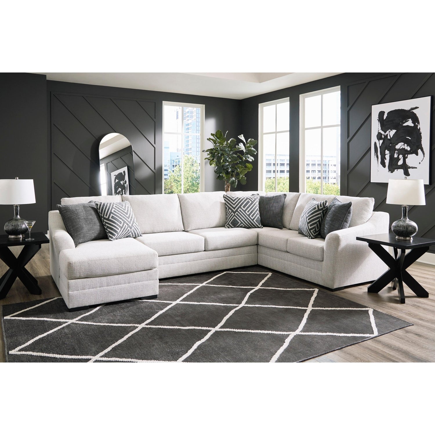 Diseño refinado, rediseñado para adaptarse a tu estilo de vida ajetreado. Este sofá seccional con chaise longue impresiona en zonas de mucho tránsito con su tono neutro y su carácter contemporáneo. ¿Te preocupa el mantenimiento con niños y mascotas en casa? Olvídate de los derrames y la suciedad, ya que su tela resistente es fácil de limpiar y lavable a máquina.