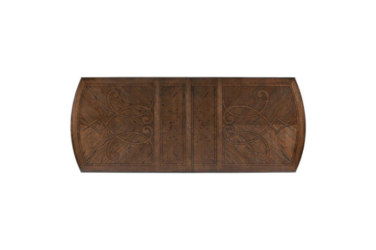 La imponente escala de la Colección Bergen evoca una estética atemporal para el comedor tradicional de su hogar. El acabado en roble oscuro realza la distintiva chapa de roble de la colección, a la vez que contrasta con el patrón decorativo del tablero. Los detalles tradicionales abundan en toda la colección, con pilastras fresadas clásicas, molduras y frontones decorativos que embellecen el diseño.