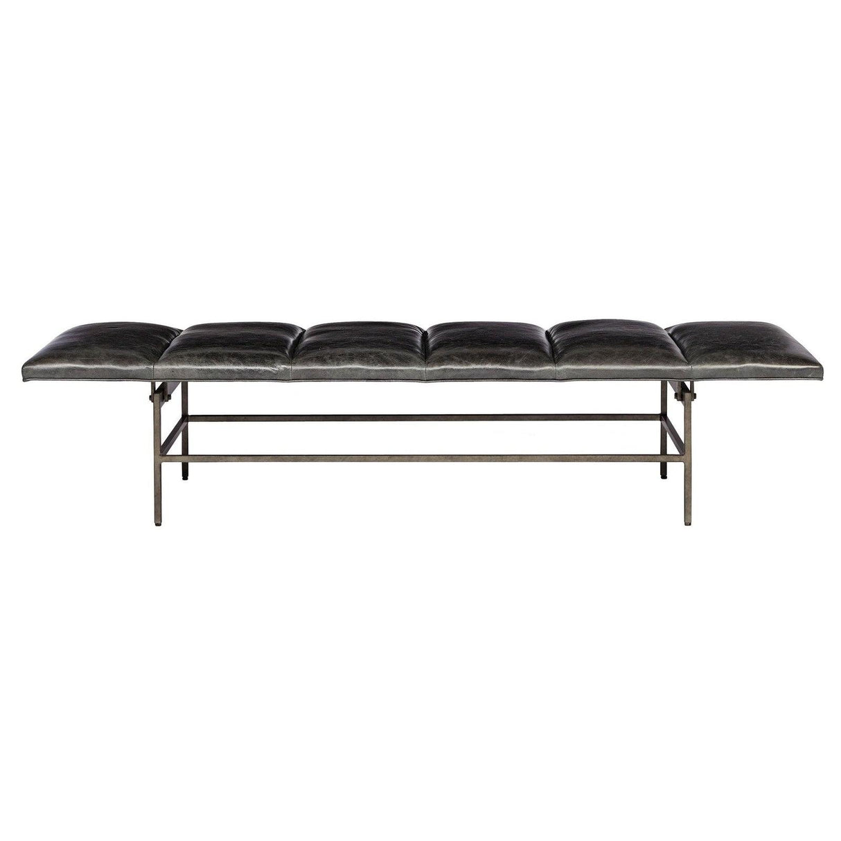 - Al combinar un asiento de cuero con mechones capitoné con una base de acero minimalista, este banco aporta un atractivo industrial sofisticado.