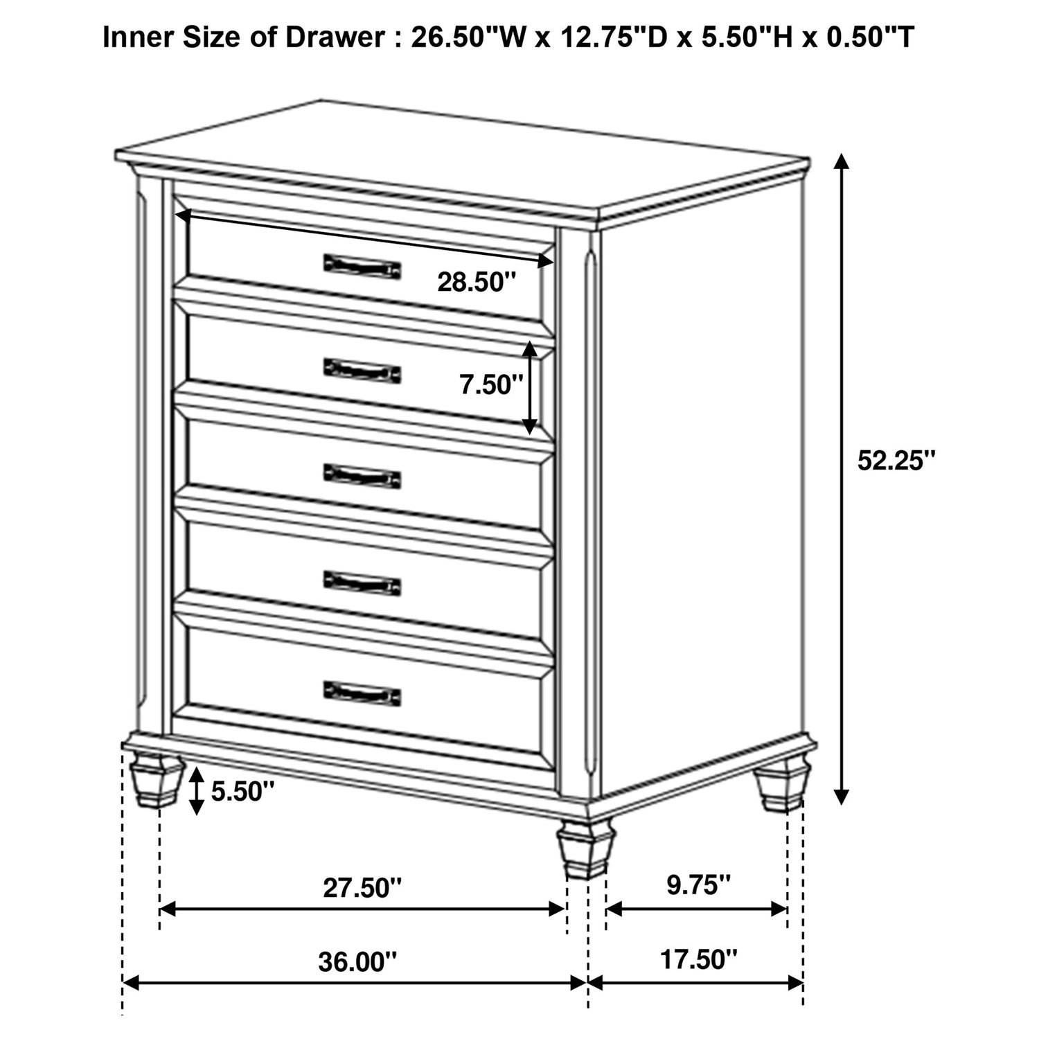 Juego de dormitorio Franco California King de 5 piezas, blanco desgastado | Coaster está agotado y se enviará tan pronto como vuelva a estar disponible.