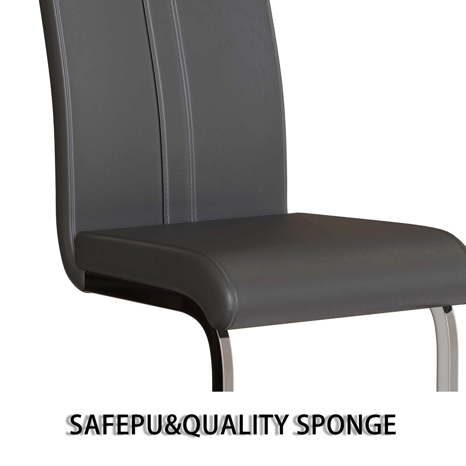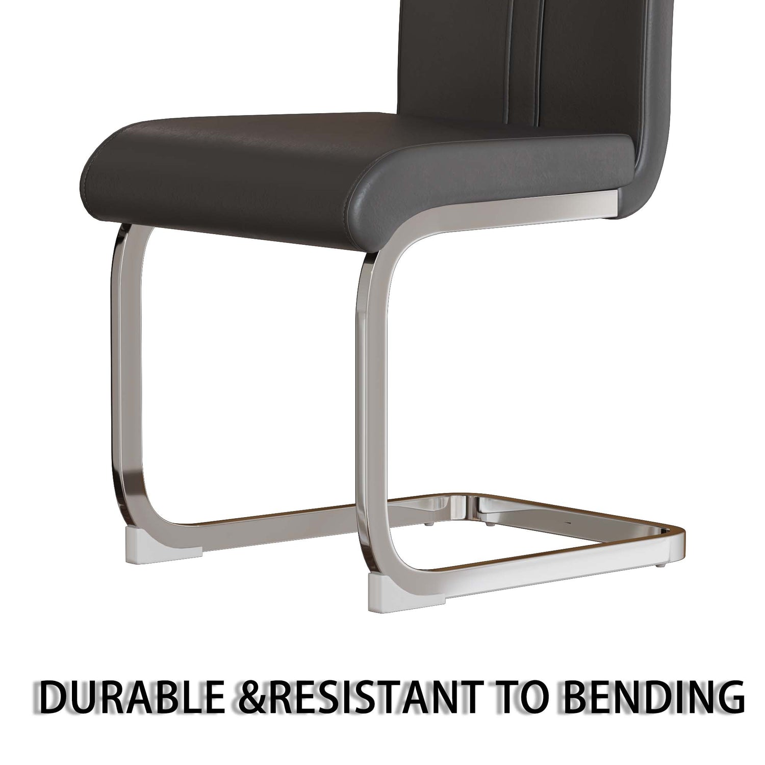 - 8. Duradera y resistente: Esta robusta silla de comedor de cuero gris cuenta con una base plateada en forma de C, que le da un aspecto moderno y único. La base cuenta con patas de plástico resistentes a los arañazos para evitar daños en el suelo.