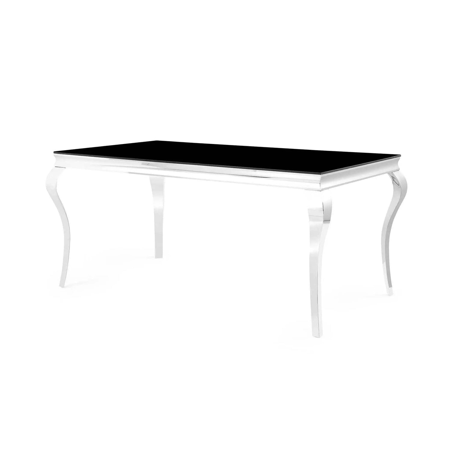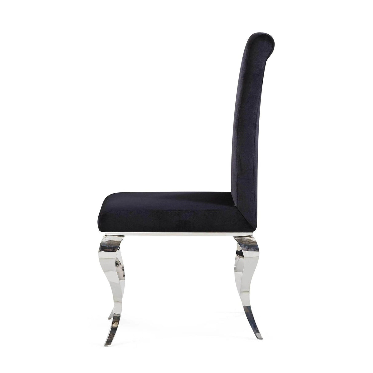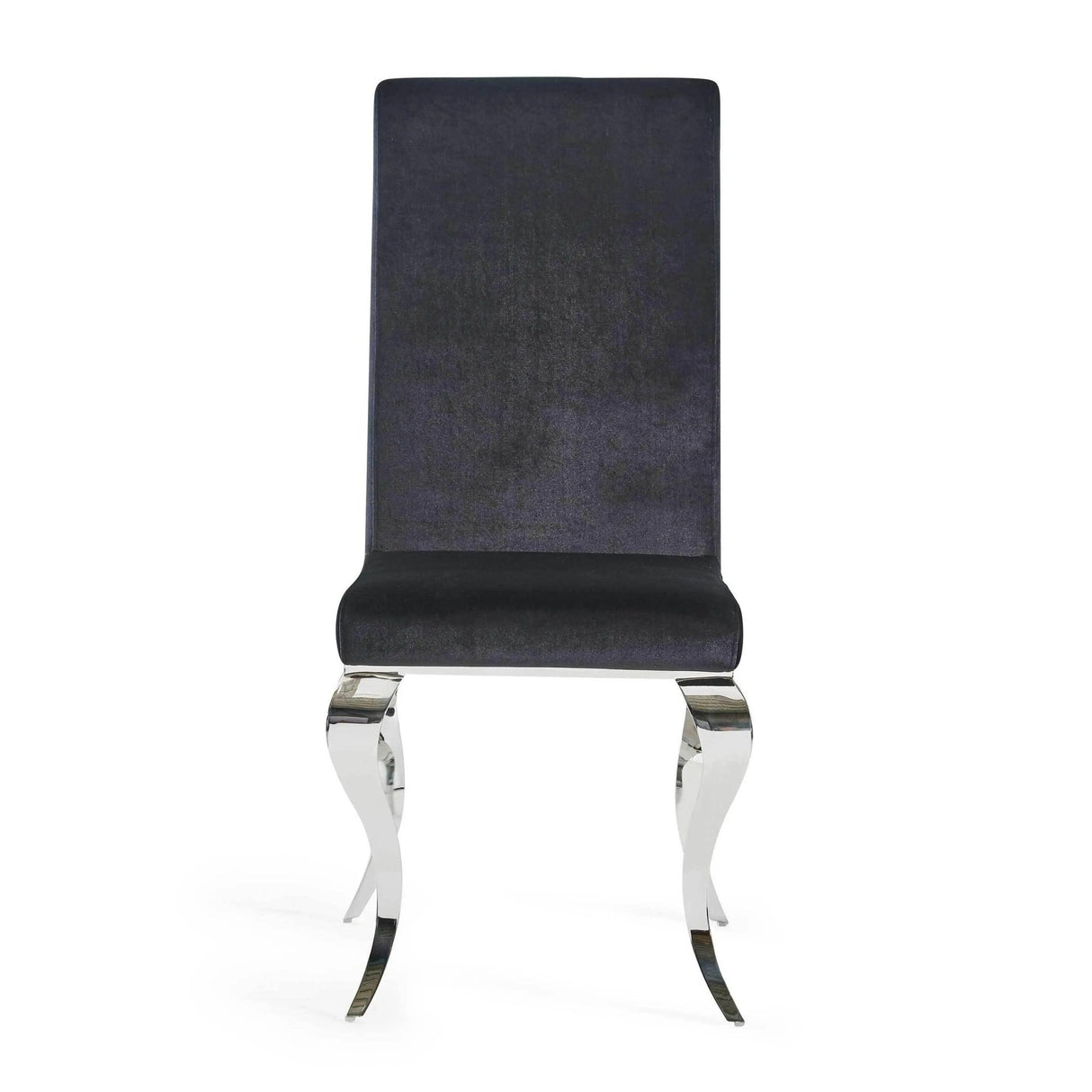 Mesa de comedor moderna de inspiración neoclásica con tablero de vidrio negro, base de acero inoxidable pulido y patas de acero inoxidable estilo Queen Ann. Esta mesa contemporánea con tablero de vidrio negro complementará cualquier comedor. Cuenta con un tablero rectangular de vidrio templado, patas plateadas en forma de V y una base negra brillante que le da un aspecto sofisticado. La silla de comedor D858DC de terciopelo negro luce un estilo encantador con su respaldo alargado, asiento ancho y patas de transición en una estructura de acero inoxidable. La simplicidad, la esencia del diseño, es su principal atractivo. Se integra con cualquier ambiente gracias a sus colores tenues y líneas modernas. Con un diseño y una calidad excepcionales, esta silla de comedor es ideal para los amantes del hogar. El juego de comedor D858DT/D858DC de 5 piezas en negro ofrece una alternativa de diseño moderno para su cocina, comedor o cafetería. Presenta un diseño contemporáneo.