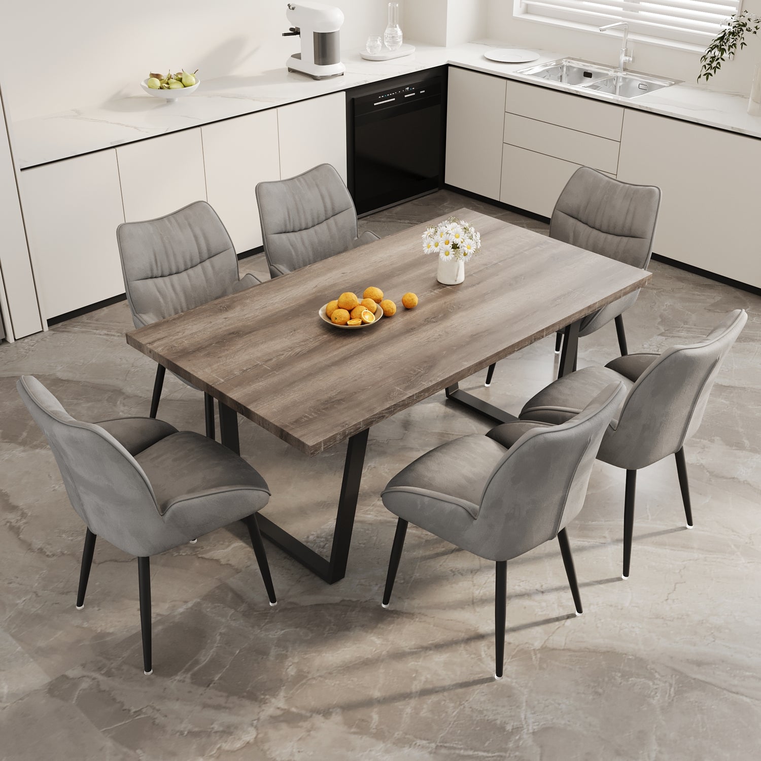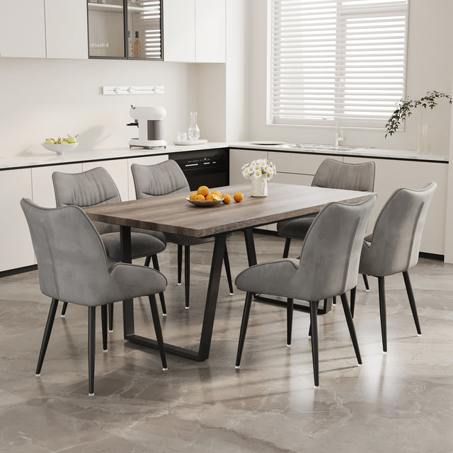 Mesa de comedor y sillas rectangulares de MDF de 62,9 pulgadas, juego de 6 piezas, elegante mesa de comedor, mesa de comedor de cocina, resistente y duradera, fácil de montar, adecuada para cenar con 4-6 personas.