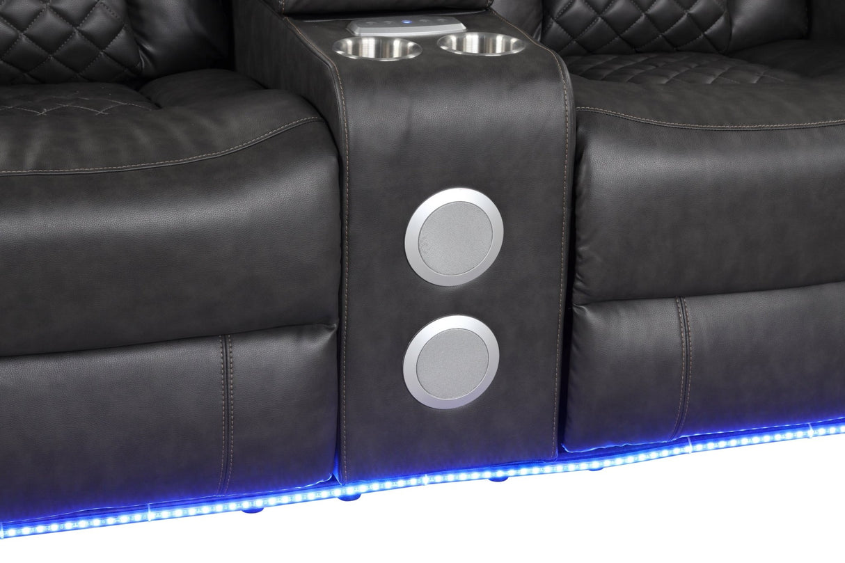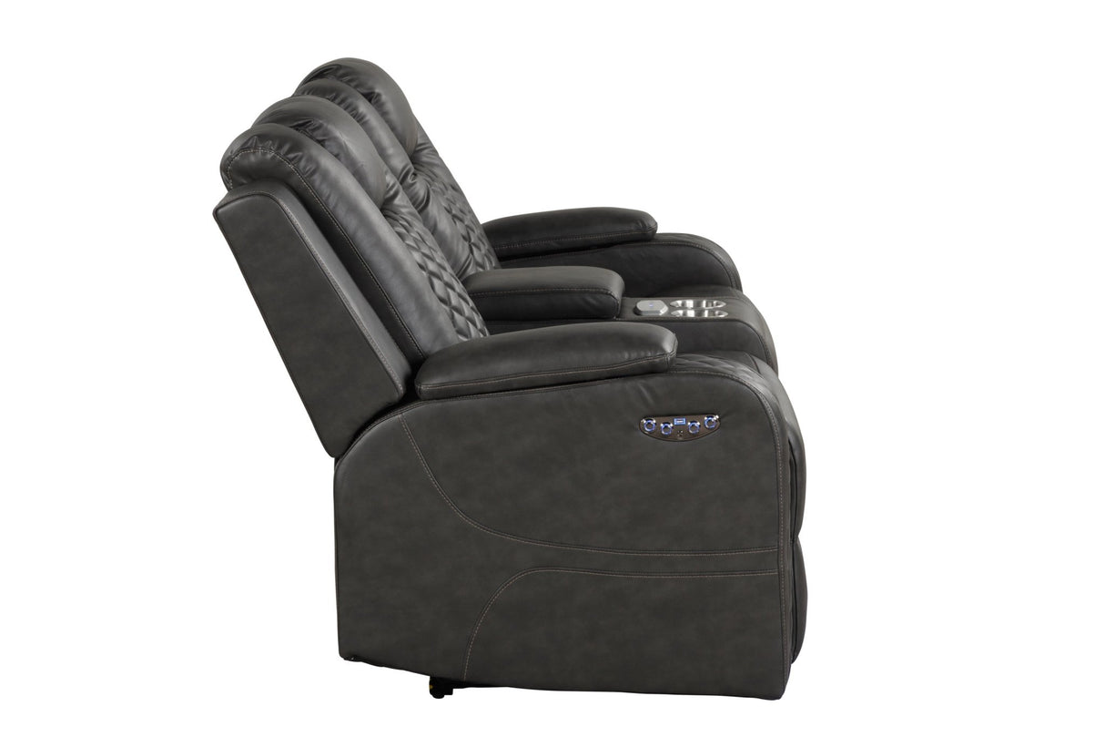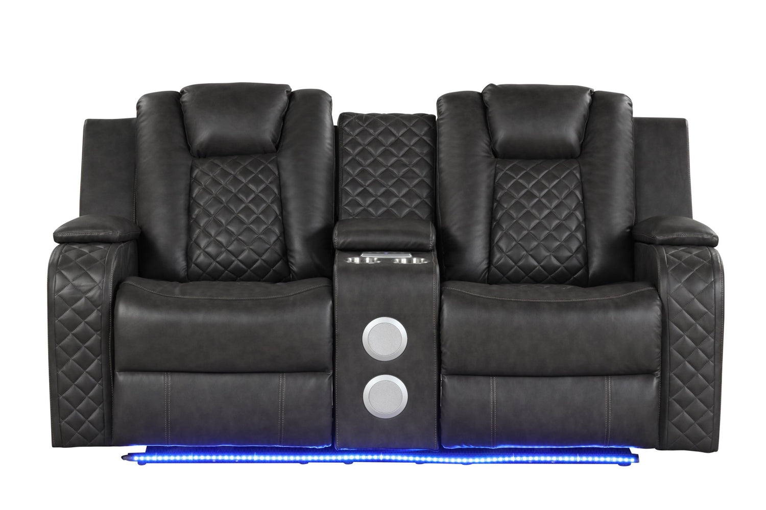 Loveseat reclinable eléctrico con LED de Benz, fabricado en piel sintética en color gris