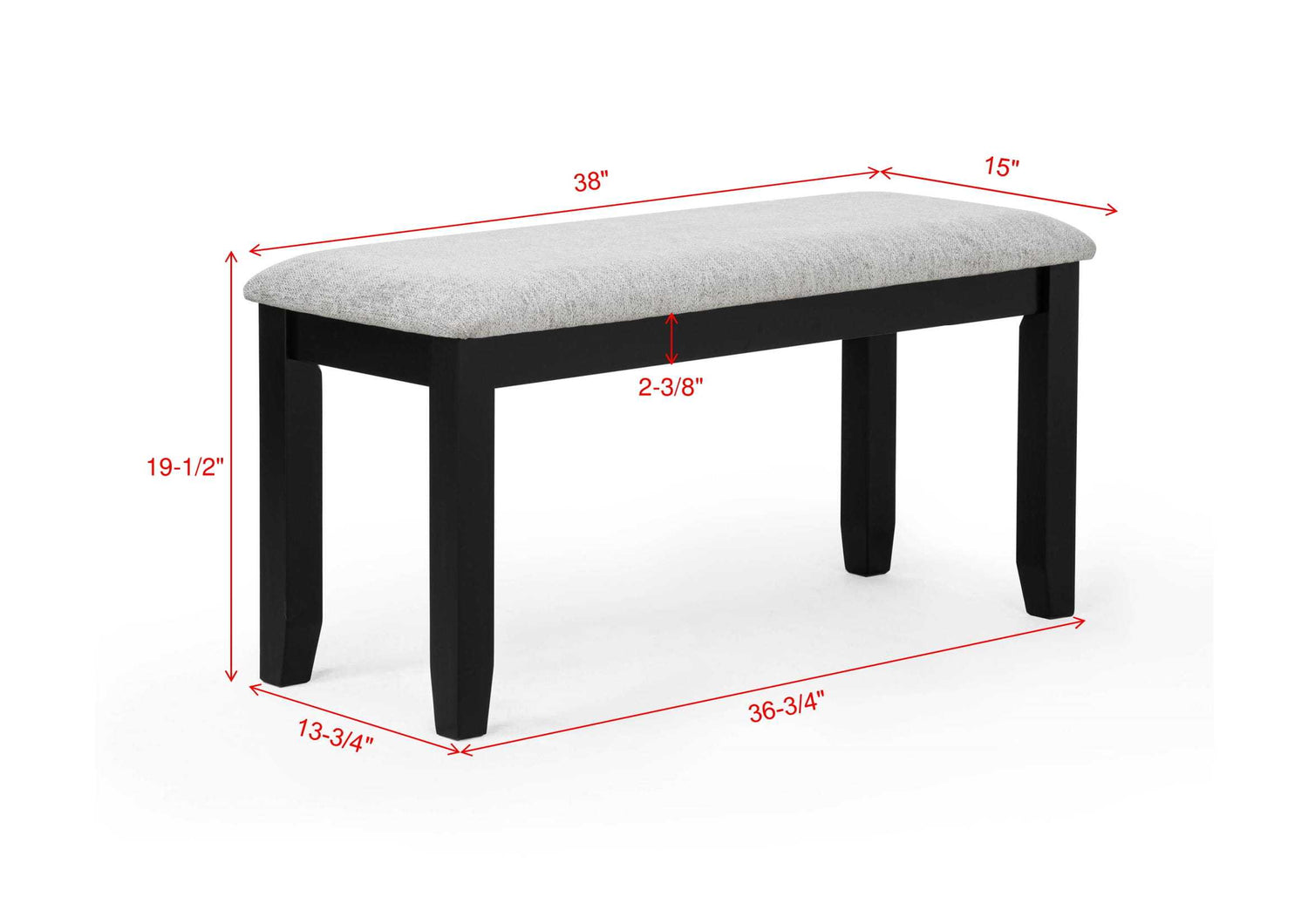 Sencillo pero elegante, este conjunto de comedor ofrece un aspecto limpio y moderno con funcionalidad para el día a día. La mesa rectangular presenta un acabado gris envejecido que realza la veta de la madera, combinado con una estructura oscura en contraste para un efecto contemporáneo de dos tonos. Las sillas y el banco a juego lucen amplios respaldos de listones y asientos acolchados tapizados en una tela neutra con textura, lo que proporciona comodidad con un diseño estilizado. Perfecto para comidas familiares informales o reuniones informales, este conjunto aporta un toque fresco y versátil a cualquier comedor.