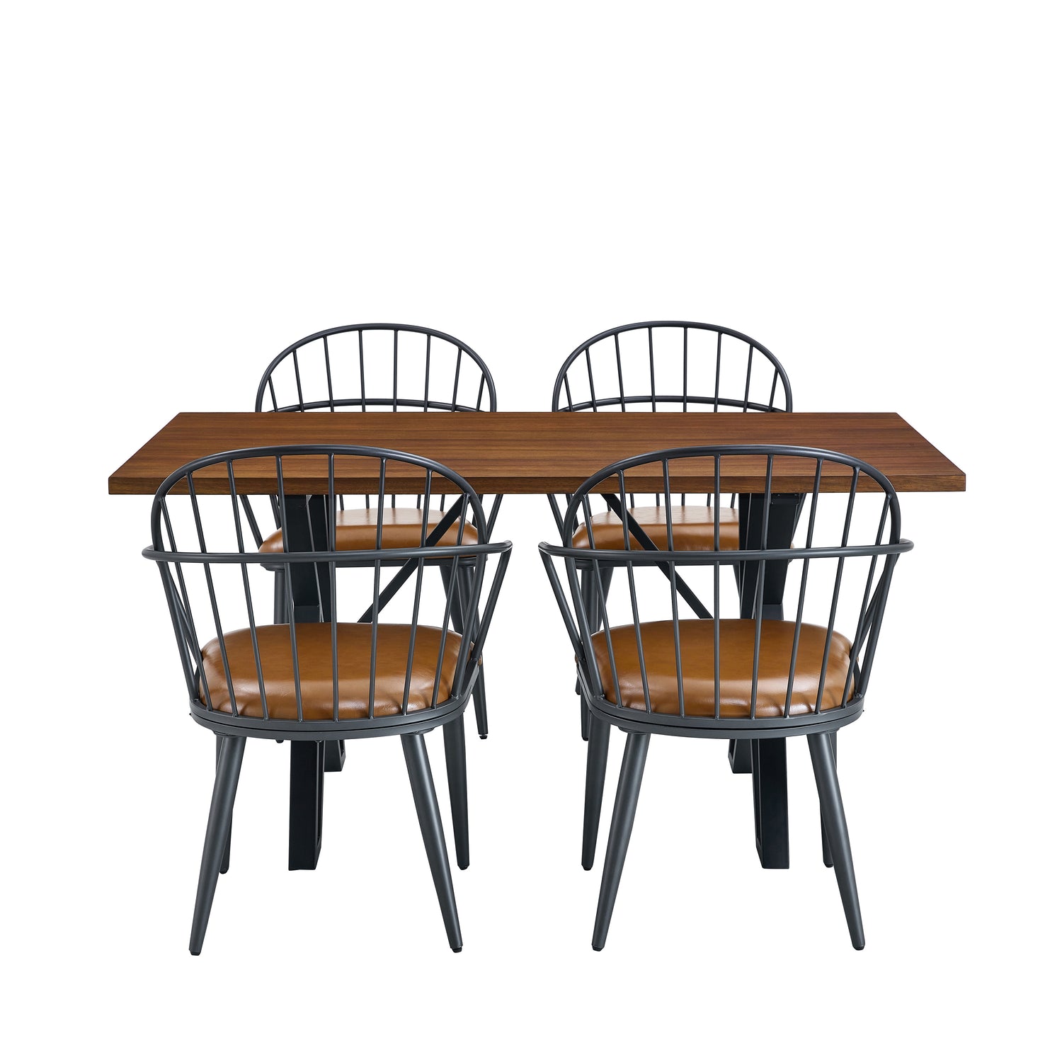 Juego de comedor de 5 piezas estilo industrial tapizado para interiores con patas de metal, acabado marrón, construcción de MDF y metal.