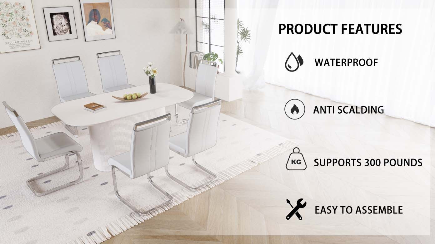 - Juego de mesa y sillas de comedor de 2,7 piezas: una mesa que puede acomodar de 4 a 8 invitados para reuniones y 6 sillas de comedor sin brazos de estilo moderno de cuero diseñadas ergonómicamente, creando un foco de moda para usted en el comedor.