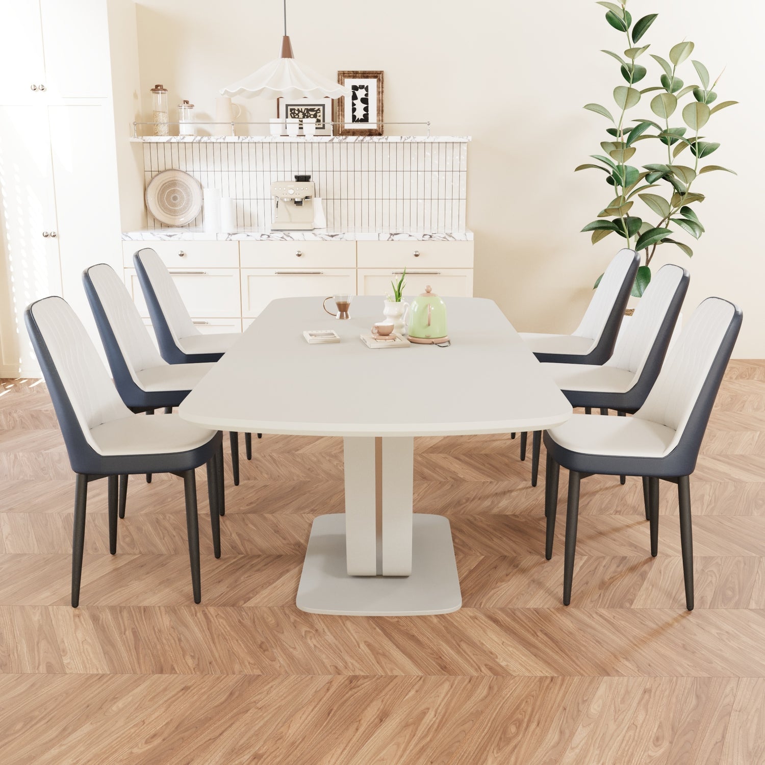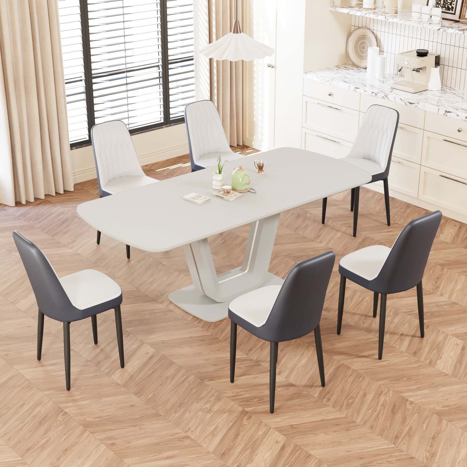 Juego de mesa de comedor expandible de 62,99 a 78,74 pies para 2 a 8 personas, equipado con 6 sillas de comedor acolchadas gruesas de tela de PU y una espaciosa mesa de comedor, mesa de cocina y sillas, con patas de mesa en forma de U
