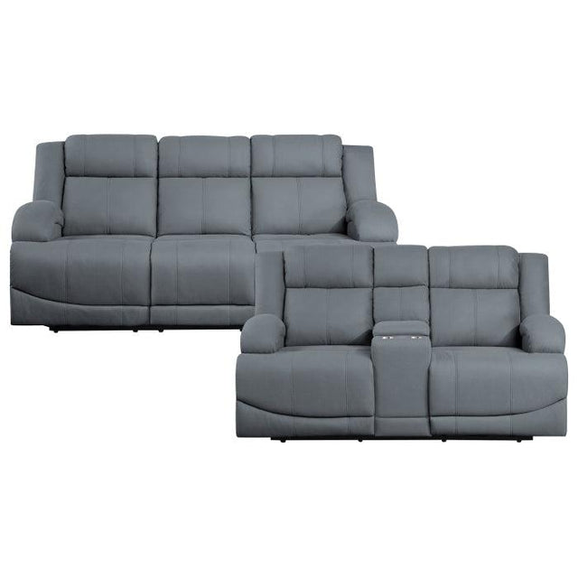 Conjunto de sofá reclinable eléctrico doble Camryn de 2 piezas en azul grafito 9207Gpb*2Pw | Homelegance