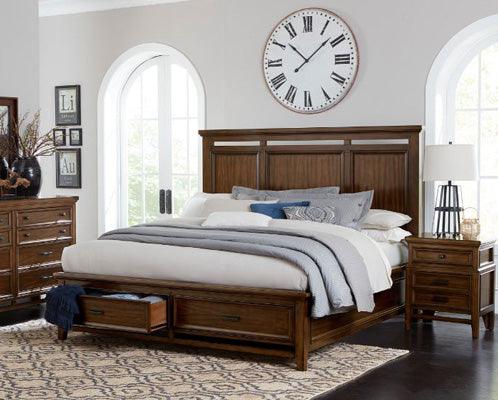Cama Frazier Park Eastern King con plataforma y espacio de almacenamiento en el pie de cama, en cerezo marrón 1649K-1Ek* | Homelegance
