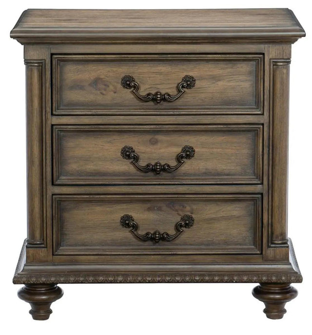 Mesita de noche Rachelle de 3 cajones en nogal desgastado 1693-4 | Homelegance