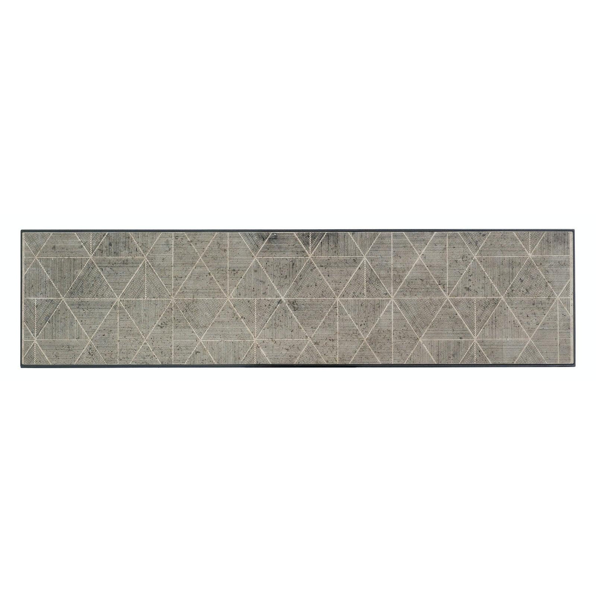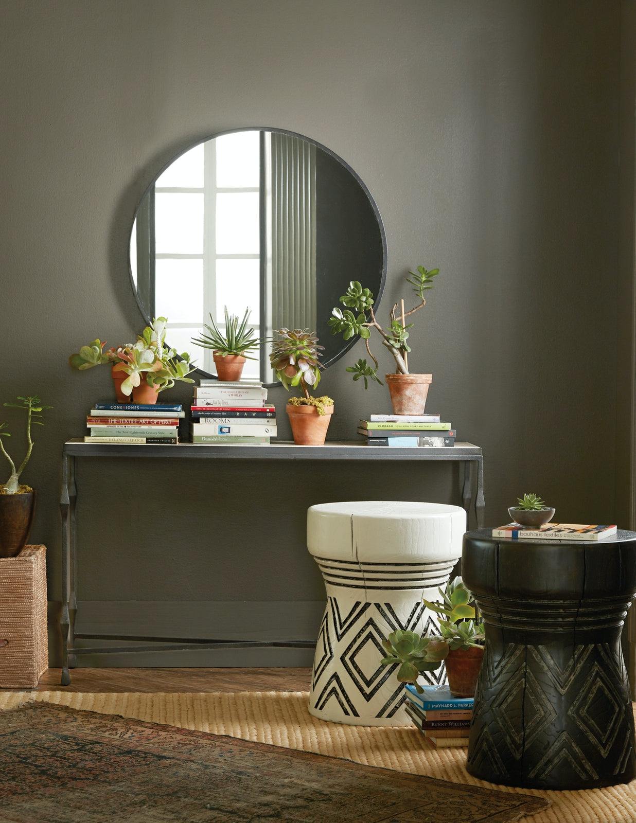 Infunda en su hogar un carácter artesanal y materiales audaces con la consola de metal y madera Commerce & Market de Hooker Furniture . Esta ecléctica pieza presenta una superficie de piedra travertino blanco con un diseño serigrafiado de inspiración tribal, sobre una elegante base de metal forjado negro .