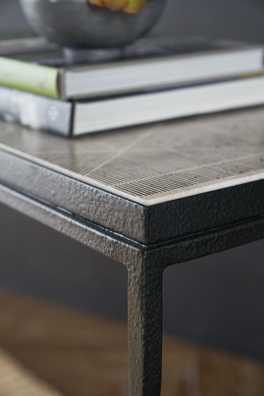 Mesa consola de metal y madera con tablero de piedra travertino Hooker Furniture Commerce & Market