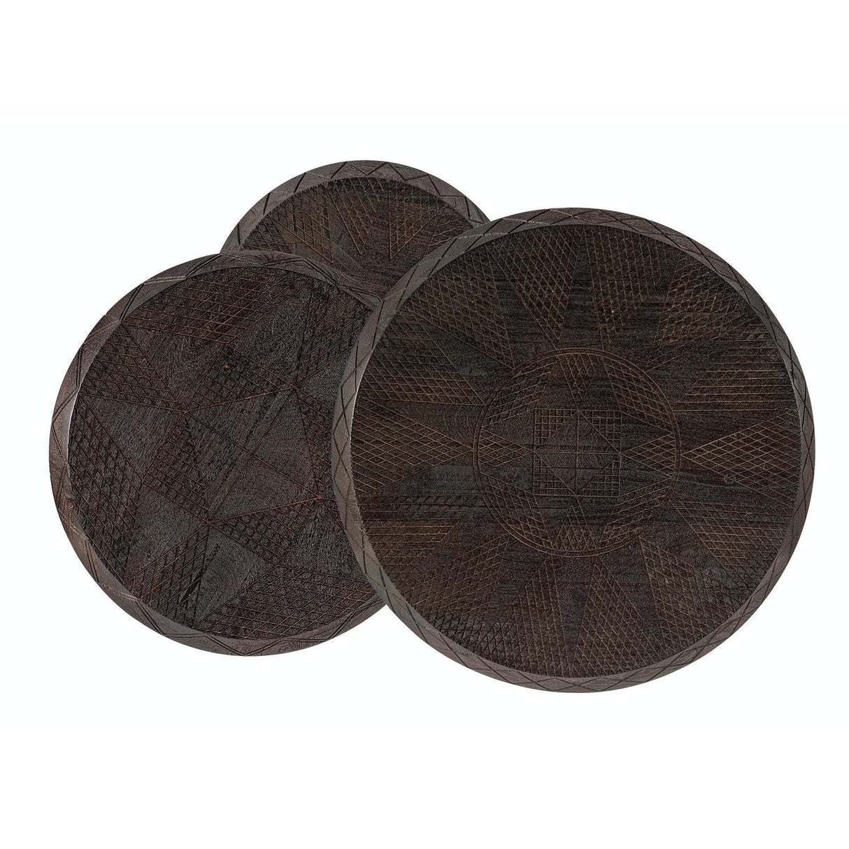 - Con orígenes globales e inspiración de diseño de todo el mundo, los diseños seleccionados presentan una variedad ecléctica de materiales que incluyen metales fundidos, incrustaciones de hueso, mármol, piedra, travertino, vidrio pintado, sólidos de acacia, nogal, roble, madera de mango y chapas de nogal en una variedad de acabados ricos.