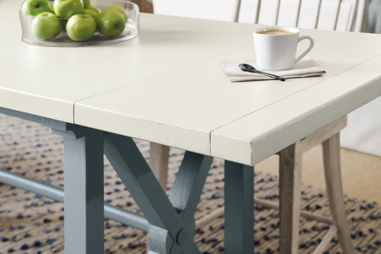 - Capture las paletas relajantes y las texturas orgánicas de la vida en una cabaña frente al mar con la elegante mesa clásica de altura de mostrador Piers Friendship.