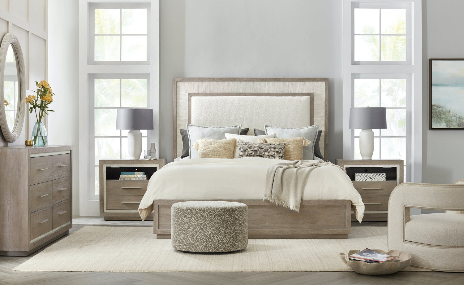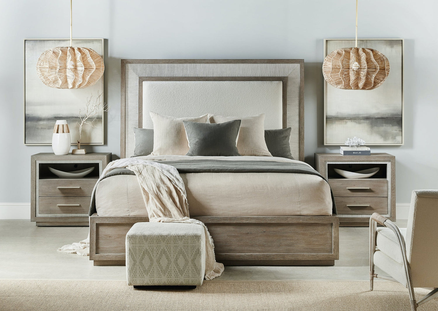 Capture la relajada elegancia de la vida costera con la cama tapizada Serenity Rookery de Hooker Furniture . Con su refrescante acabado bitono —una mezcla de roble lavado gris desgastado y un gris claro texturizado—, esta cama refleja la estética relajante de un refugio costero.