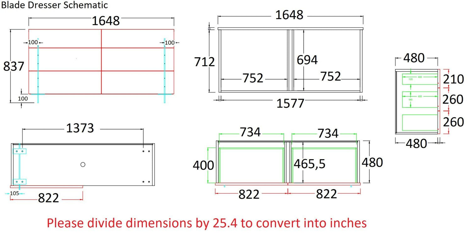 • Cómoda: 33" de alto x 65" de ancho x 20" de profundidad