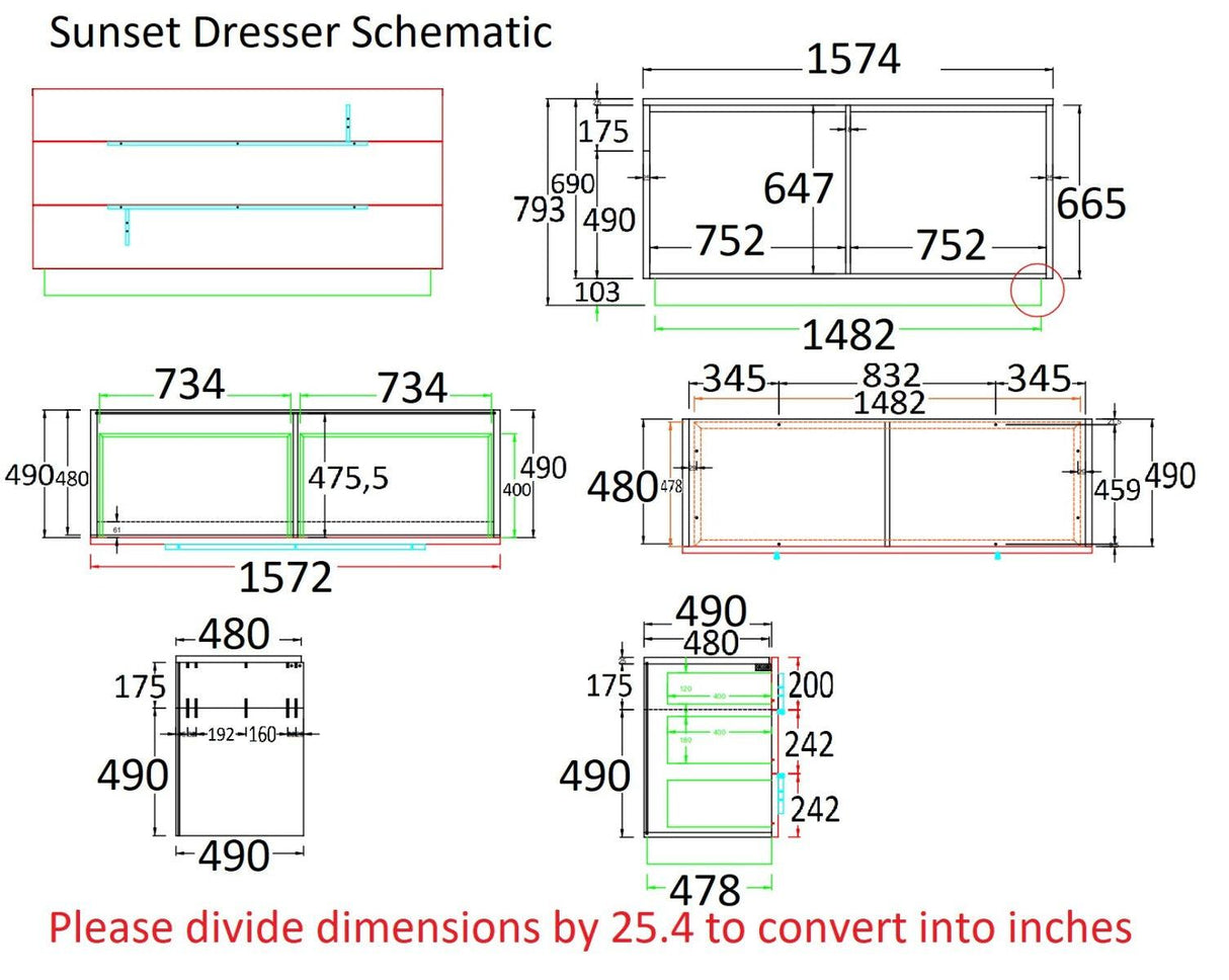 - Cómoda: 30,5" de alto x 62" de ancho x 20,5" de profundidad