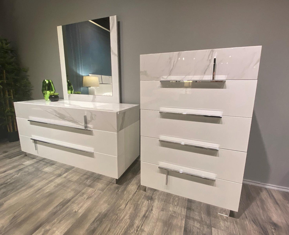 Juego de dormitorio Sunset de 6 piezas tamaño queen en laca blanca brillante - 17646Q-6Set | J&M