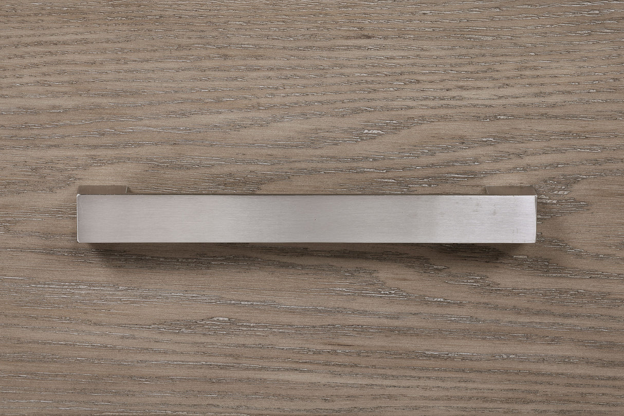 - La moldura ingleteada agrega dimensión mientras que los tiradores de barra con acabado cromado completan el aspecto.