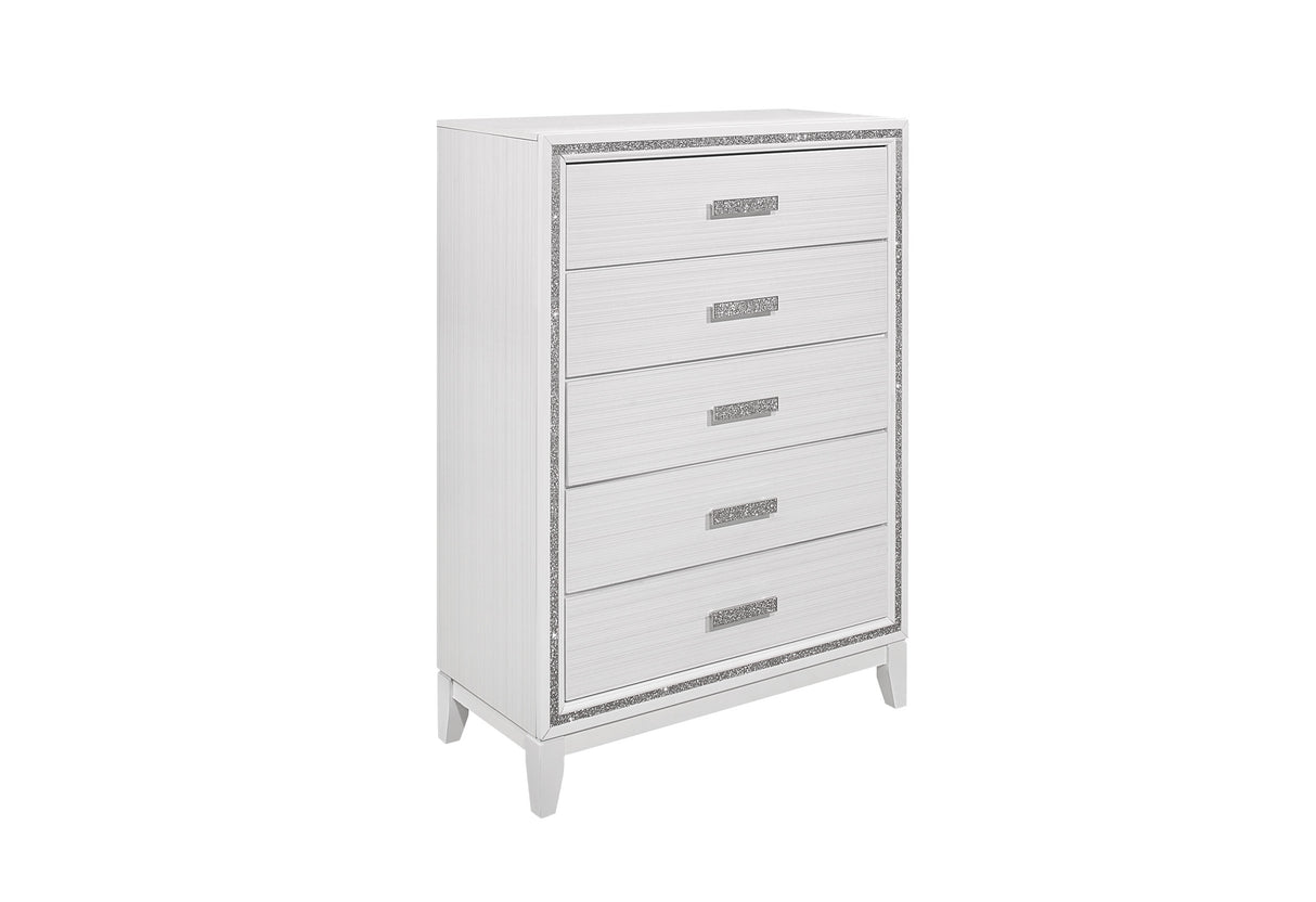 El dormitorio Lily fusiona dos mundos. Las líneas clásicas y los toques modernos crean un hermoso y glamuroso dormitorio de transición. El diseño de cristal triturado realza todas las piezas, junto con la iluminación LED que realza el cabecero. Este diseño no solo se utiliza como moldura decorativa, sino que también se extiende a los herrajes. El resultado final es un hermoso y glamuroso dormitorio.