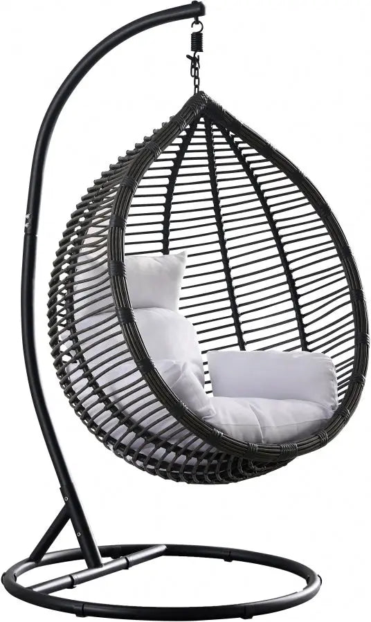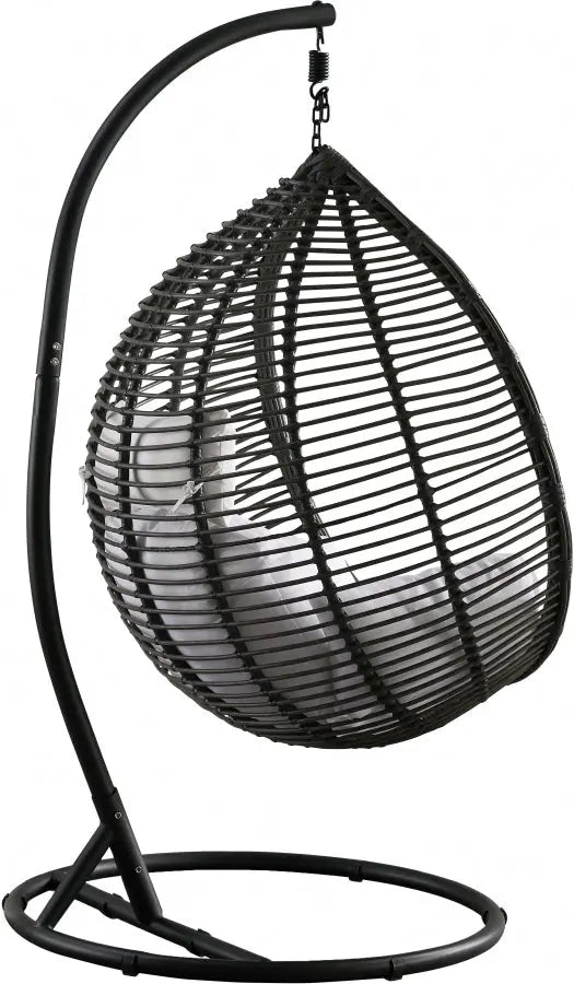 Disfruta del día en la comodidad de este columpio Tarzan para patio. Este columpio con forma de huevo presenta un diseño de ratán gris oscuro que le da un toque lujoso a tu patio o porche, o úsalo en interiores para añadir un toque divertido a cualquier habitación. Su base de metal negro mate proporciona un soporte resistente, garantizando horas y horas de diversión y relajación. Úsalo tanto en interiores como en exteriores gracias a su resistente cojín de tela impermeable.